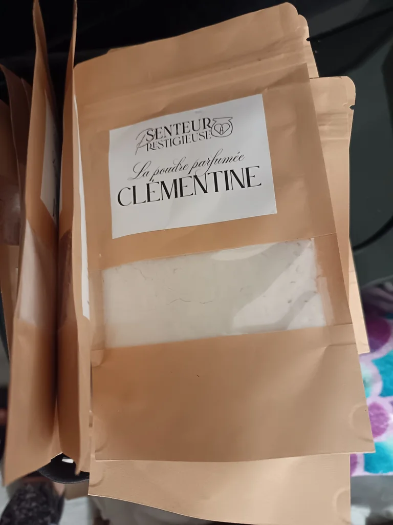 Étant artisan et souhaitant arrêter mon activité prochainement. Je vends mon stock de poudre parfumée 4€ l'unité Parfum au choix: . Clementine . Ruby jasmine (lenor) . Fresh (lenor) . Cerise . Cerise noire . Mûre myrtille . Fraise tagada . anti moustique . Chic (La petite robe noire) . Hôtel (hôtel disney) . Musty (mustela) . Marine (le mâle) . Ange (Angel)