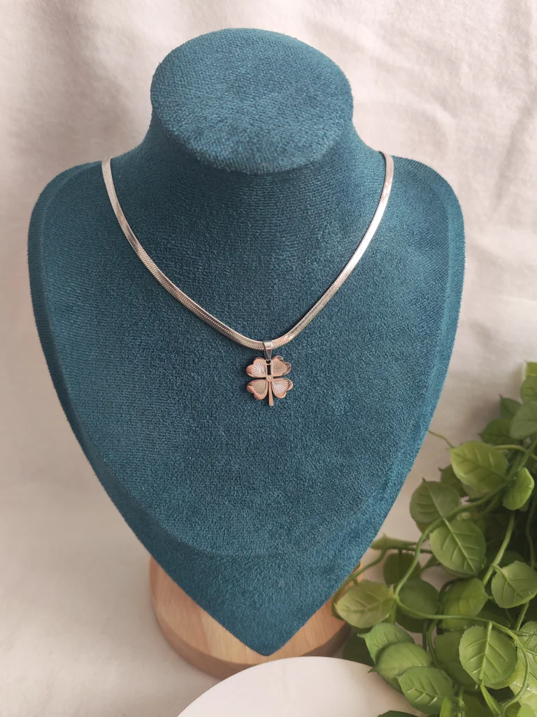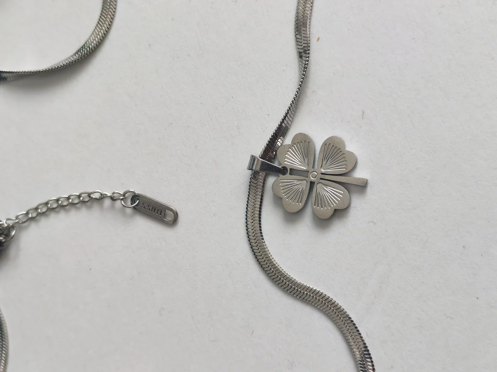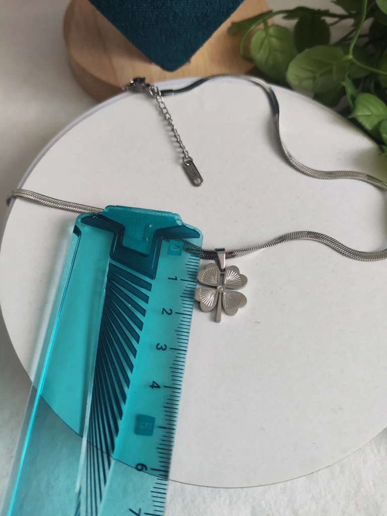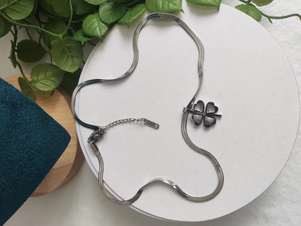 Collier femme couleur argente Avec son joli trèfle à 4 feuilles En acier inoxydable Avec pochette cadeau Envoi rapide et soigné Une petite attention dans chaque commande