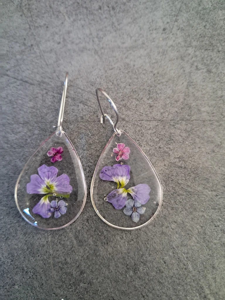 Boucle d oreille en résine et fleurs naturelles hauteur 3cm fait main