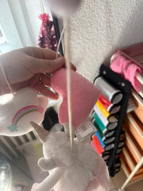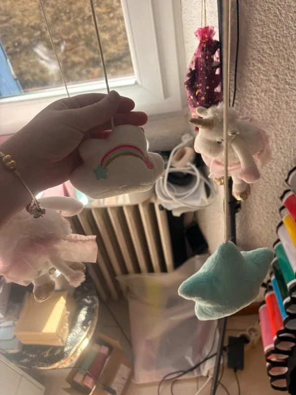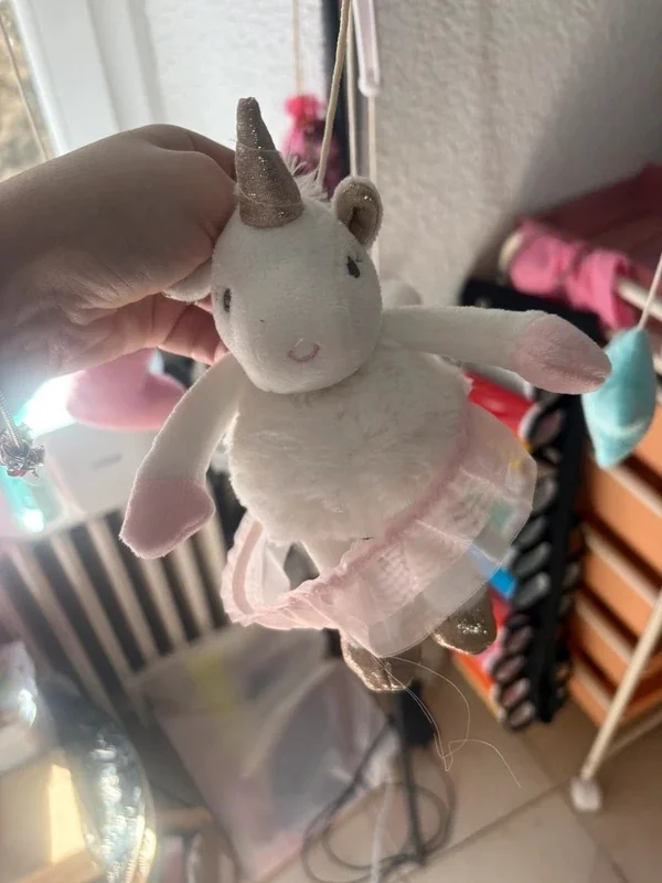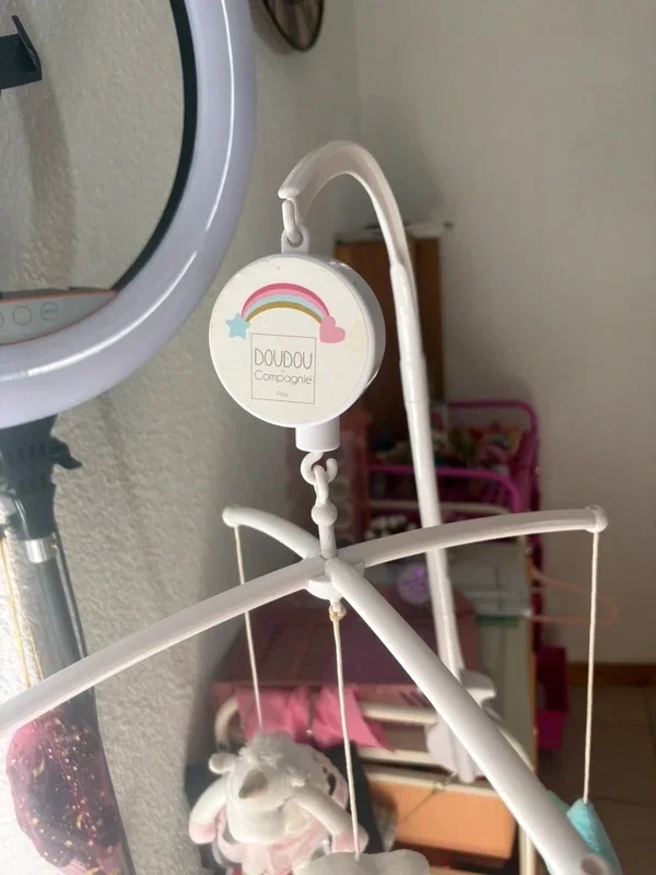Adorable mobile musical bébé Doudou et Compagnie thème licorne 🦄💗 ✔ Marque reconnue pour sa qualité et ses finitions ✔ Mobile musical avec mécanisme intégré 🎶 ✔ Peluches toutes douces : licorne, nuage, étoile… ✔ Couleurs pastel parfaites pour une chambre bébé ✔ Système de fixation inclus 👉 Fonctionne parfaitement, musique douce idéale pour apaiser bébé 😴 📌 État : très bon état ✔ Mobile propre et complet ✔ Les petites jupettes des licornes sont légèrement détendues (voir photos) → n’altère absolument pas l’esthétique ni l’utilisation Parfait pour décorer et accompagner les moments d’endormissement ✨ 🔎 Mots-clés : mobile bebe licorne doudou et compagnie mobile musical bebe deco chambre bebe mobile lit bebe licorne peluche bebe cadeau naissance fille veilleuse musicale bebe mobile nuage etoile bebe chambre fille pastel bebe