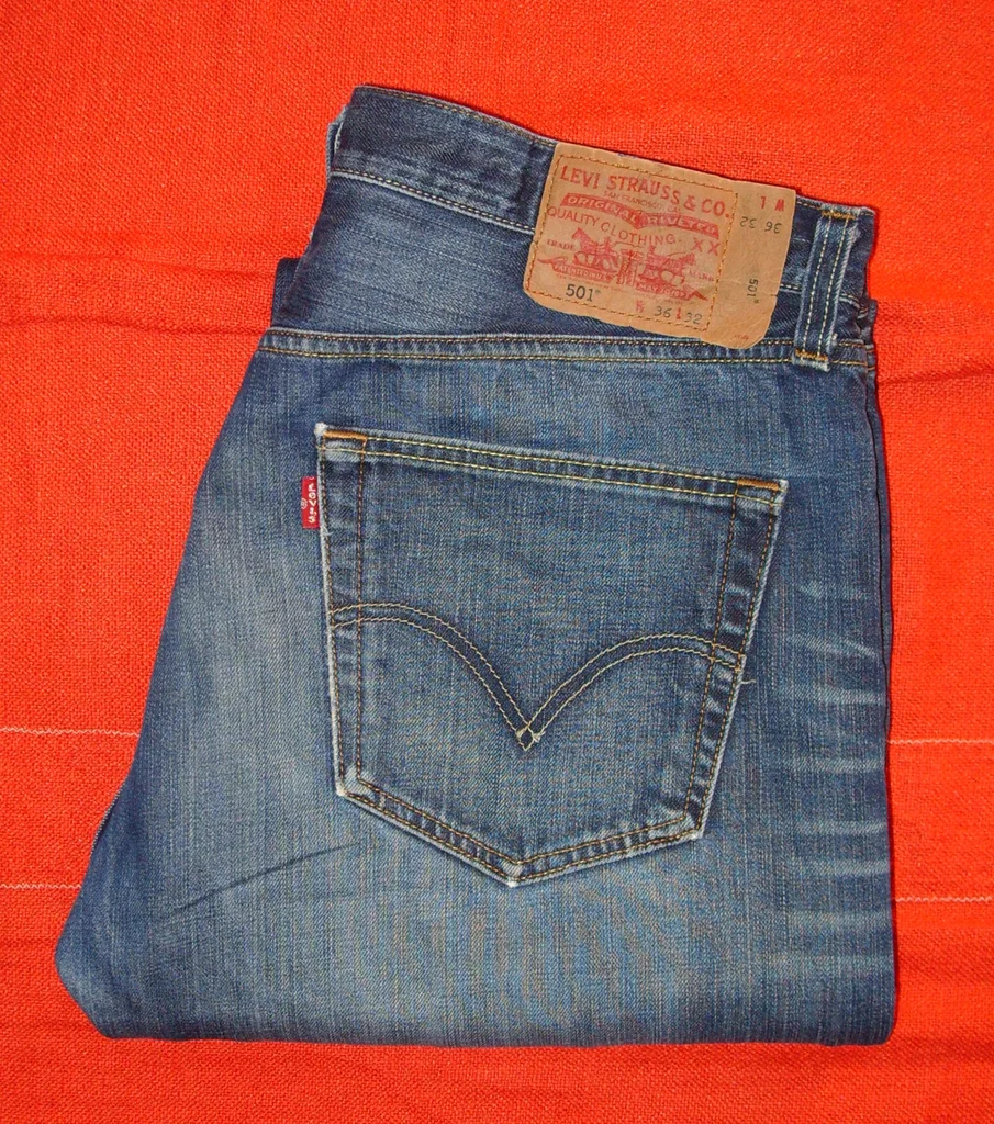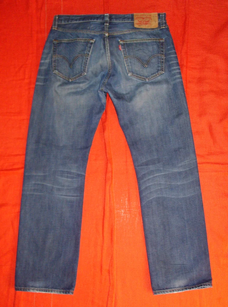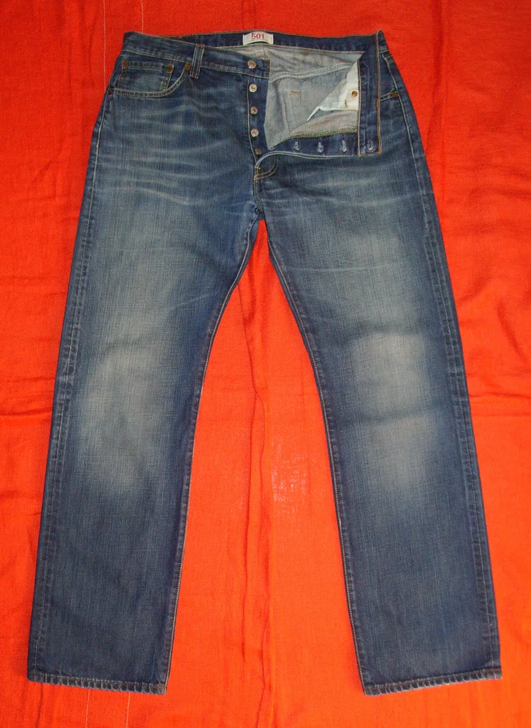 Superbe Jean Levi's 501, coupe droite, braguette a boutons, en jean 100 % coton de couleur bleu used, taille américaine W36 longueur L32 donc taille 46 française, ses dimensions sont: largeur a la taille 46 cm largeur des cuisses 32 cm De l'entrejambe au bouton 29 cm longueur totale 109 cm longueur de l'entrejambe 81 cm largeur du bas 21 cm il est en état neuf a part une toute petite retouche quasiment invisible sous le bouton, il a les ourlets d'origine et c'est un modèle authentique garantie