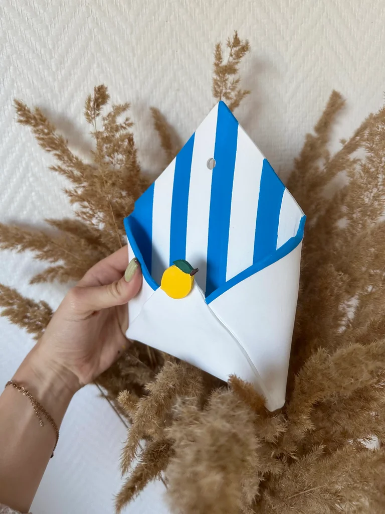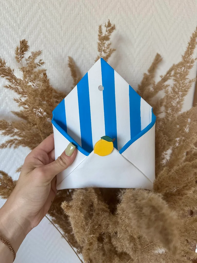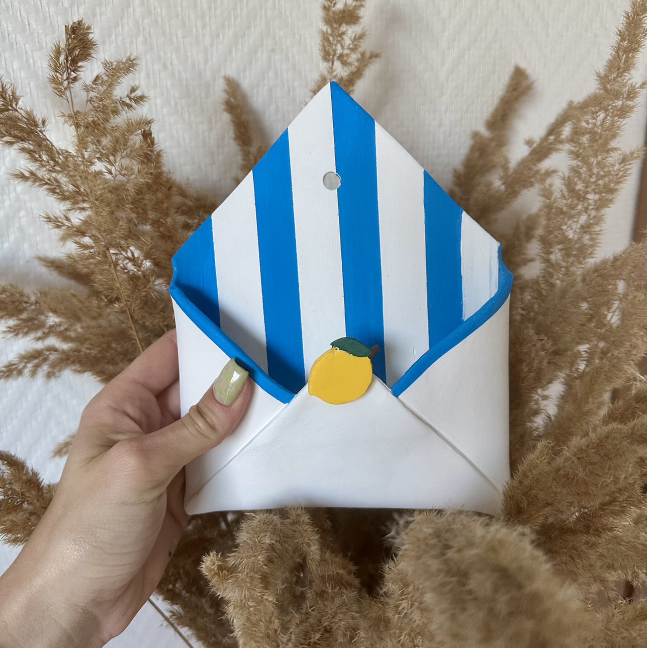 Grande enveloppe murale en argile 🍋 Vous pouvez y glisser du courrier, une photo, des bijoux, des clés ou tout autre petit objet. À savoir : les créations sont pas adaptée pour mettre de l’alimention ainsi que de l’eau ! Chacun de mes créations sont personnalisable hésitez pas à me contactez 🍋 #argile #citron #créatrice #enveloppe