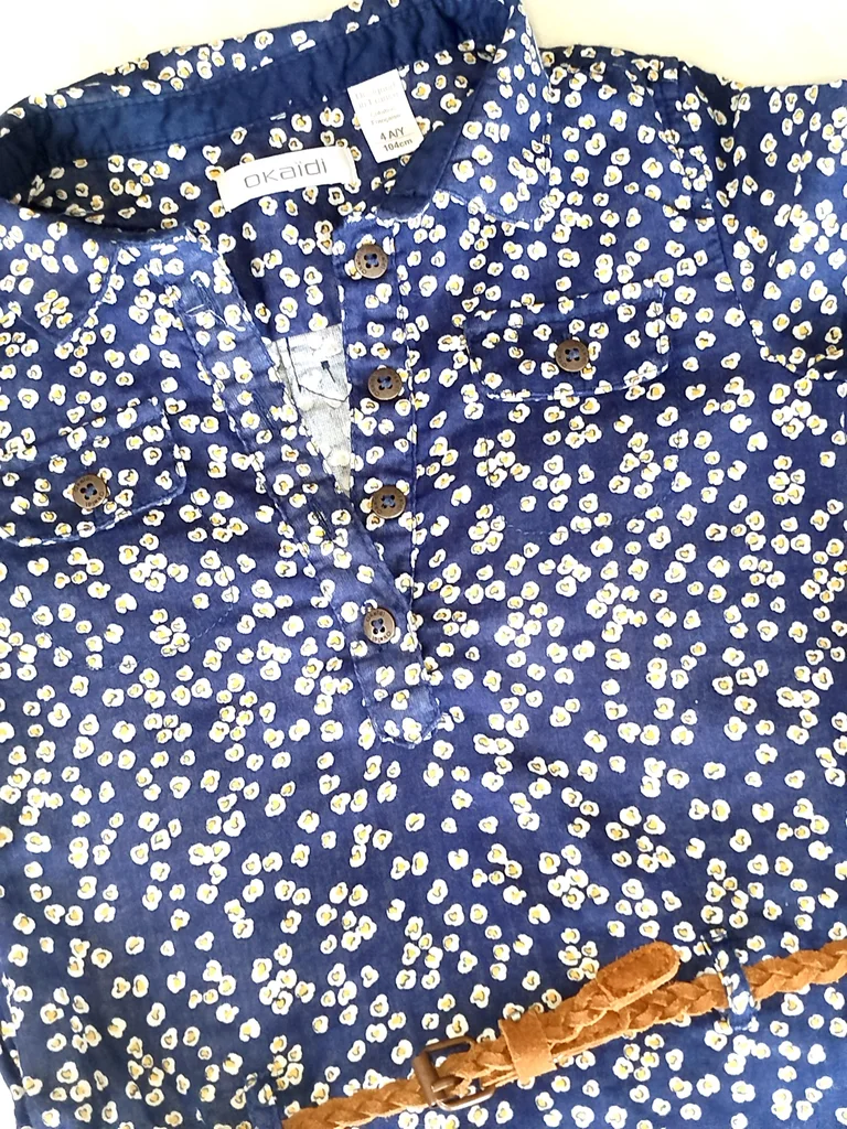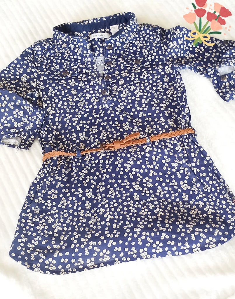 🍒 Taille 4 ans 104 cm ... NEUVE non portée Petite robe fleurie manches longues qui peuvent se retrousser La ceinture peut se retirer.. Coton assez léger