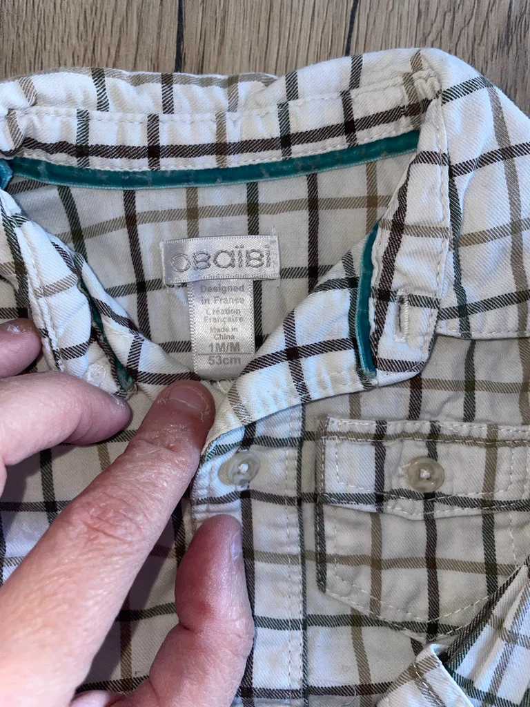 Je vends cette chemise Obaibi pour bébé de 1 mois / 53 cm. - Type de produit : Chemise - Taille : 1 mois / 53 cm - Marque : Obaibi - Couleur : Blanc à carreaux N'hésitez pas à me contacter pour plus d'informations.