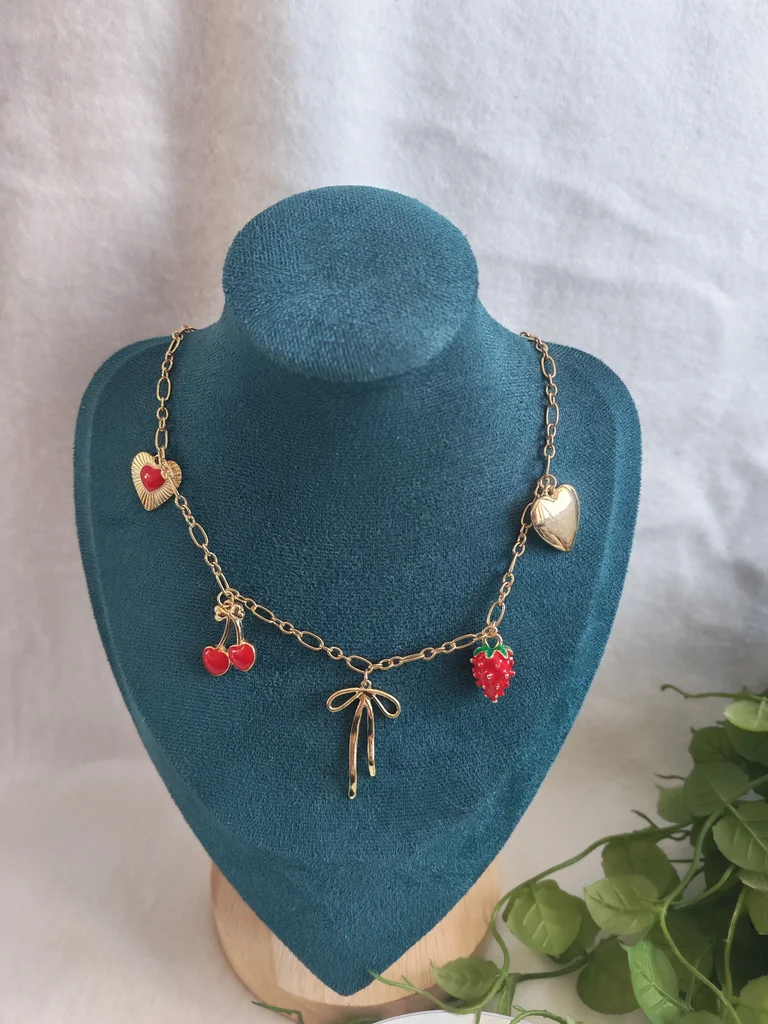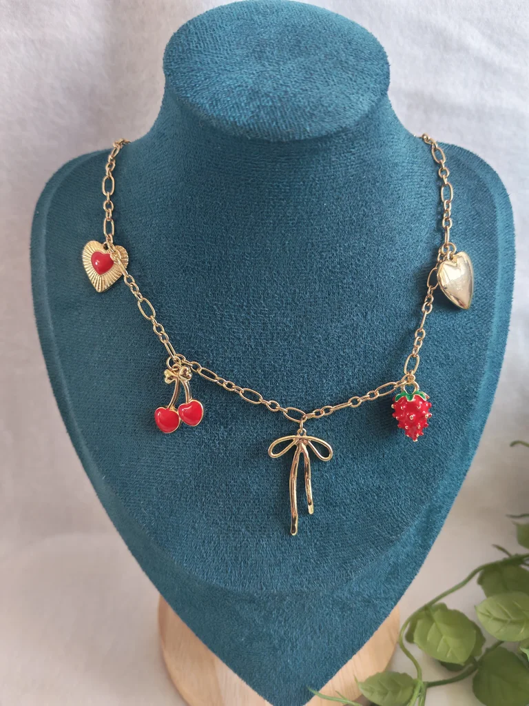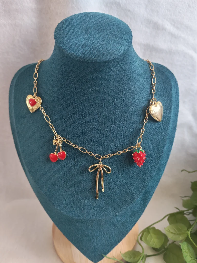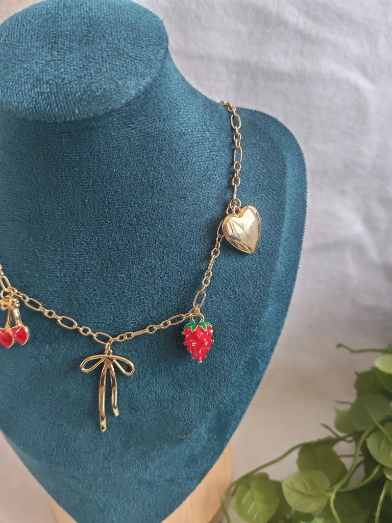 Collier femme dore et ses jolies breloques Neuf jamais porté Avec pochette cadeau Envoi rapide et soigné Une petite attention dans chaque commande