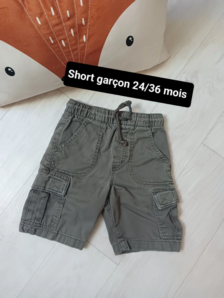 🌀 Short garçon taille 92 cm (24/36 mois ). Marque C&A En bon état. ▪️Dispose de nombreuses poches ▪️Cordon de serrage à la taille ▪️100% coton