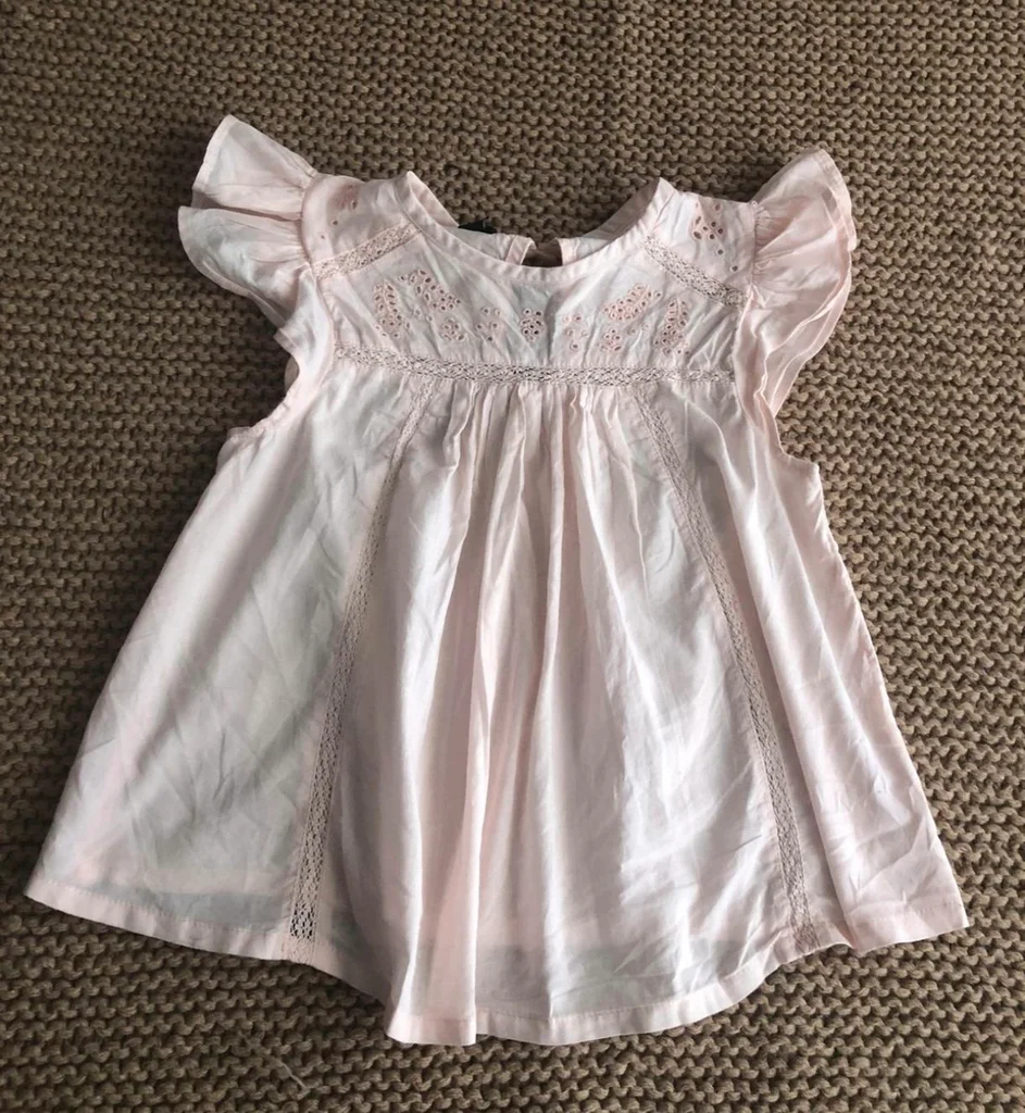 Style : Esprit bohème/champêtre avec de jolis détails de broderie anglaise sur le haut et des petites manches volantées. Détails : Matière légère et fluide, idéale pour le printemps ou l'été. Ouverture boutonnée dans le dos pour un habillage facile.