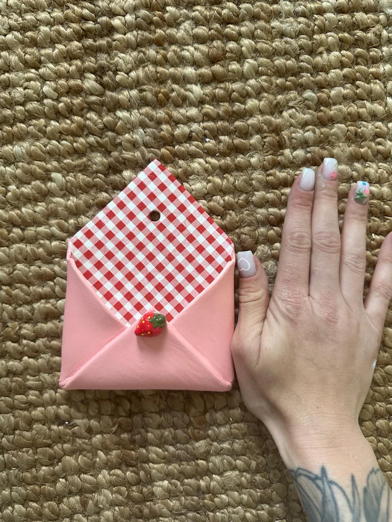 Petite enveloppe murale en argile 🍓 Vous pouvez y glisser une photo, des bijoux, des clés ou tout autre petit objet. À savoir : les créations sont pas adaptée pour mettre de l’alimention ainsi que de l’eau ! Chacun de mes créations sont personnalisable hésitez pas à me contactez 🍓