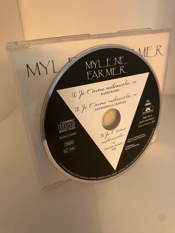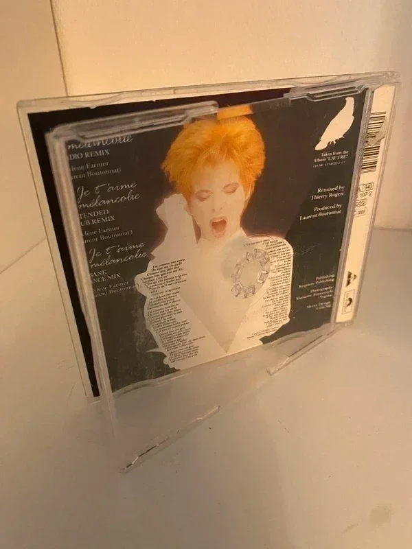 "Je t'aime mélancolie" est une chanson de Mylène Farmer, sortie en single le 19 novembre 1991 en tant que troisième extrait de l'album "L'Autre...." Sur une musique dynamique signée Laurent Boutonnat, la chanteuse écrit un texte sarcastique dans lequel elle assume son goût pour la mélancolie et s'adresse directement aux critiques. Les couplets, prononcés à la manière d'un rap (un genre musical qui n'avait pas encore explosé en France), sont alors très avant-gardistes, surtout pour une chanteuse de variétés. Réalisé par Laurent Boutonnat, le clip présente la chanteuse sur un ring pour un combat de boxe française. Le match est entrecoupé de passages chorégraphiés de la chanteuse entourée de 10 danseuses, dans des tenues signées Jean-Paul Gaultier. Le titre connaît un grand succès, atteignant la 3e place du Top 50 et la 2e place des diffusions radio. Label:Polydor – 865 107-2 Format:CD, Maxi-Single Pays:Europe Sortie:27 janv. 1992 Genre:Electronic, Pop Style:Chanson, Synth-pop Etat: B [Description tronquée]