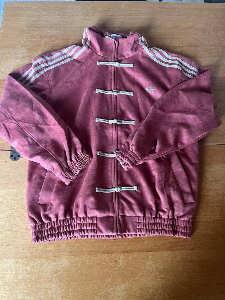 Adidas Originals Chinese New Year Jacket – Rouge/Rose Taille : à préciser Matière velours premium Boutons brandebourgs crème style kung-fu 🐉 3 bandes crème sur les épaules Logo Trefoil brodé poitrine Poignets & bas élastiqués smockés Poches latérales Bon état ✅ Coloris rouge/rose CNY iconique 🔴 Pièce collector rare 🧧🔥