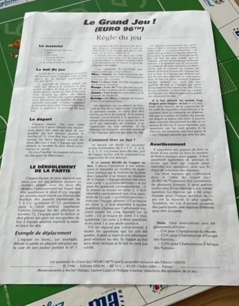 occasion Jeux l'euro 96 1000 questions 7 a 77 ans attention voir photo boite un peu abimée