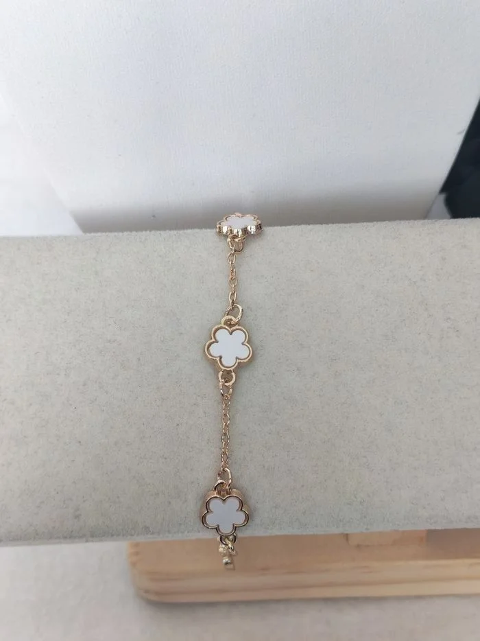 Joli bracelet couleur doré et jolies fleurs blanches Avec pochette cadeau Envoi rapide et soigné Une attention est glissée dans chaque commande