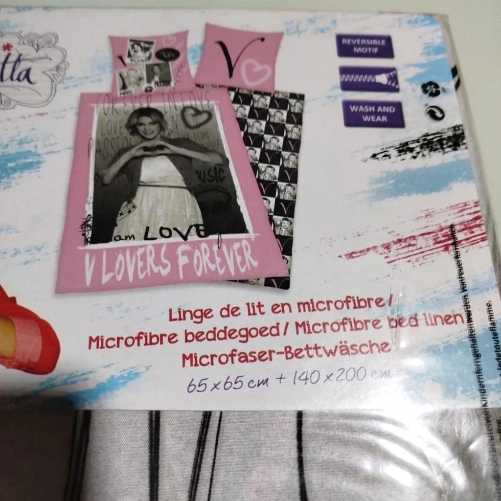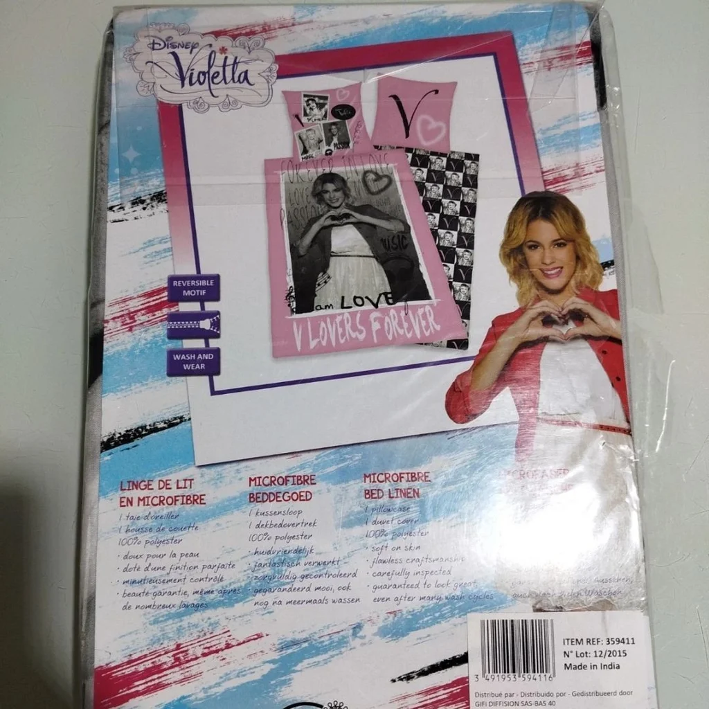 Parure de lit Disney Violetta neuve sous emballage, idéale pour une chambre d’enfant ou d’adolescente fan de la série. 🛏️ Housse de couette : 140 x 200 cm 😴 Taie d’oreiller : 65 x 65 cm 🔄 Motif réversible (2 designs en 1) 🧵 Matière : microfibre douce et facile d’entretien 🧼 Lavable en machine 🎁 Parfait comme cadeau Produit neuf, jamais utilisé, encore emballé.