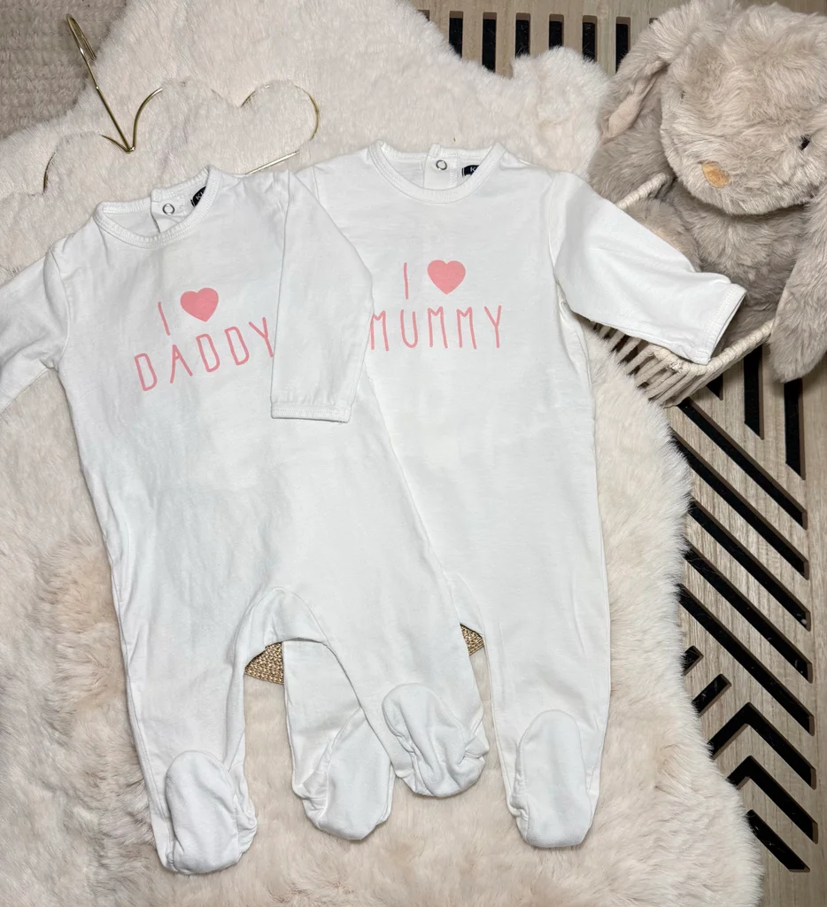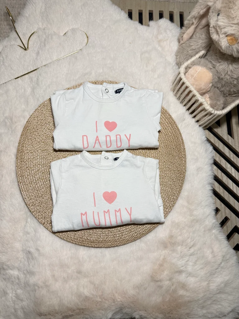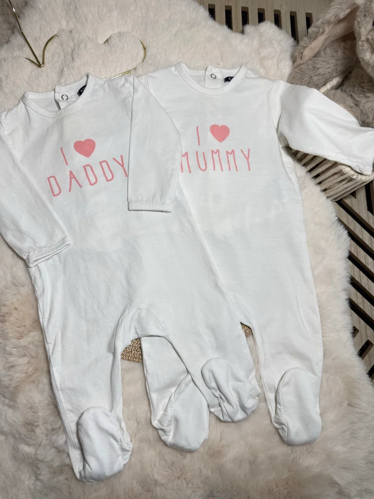 🤍 Lot de 2 grenouillère bébé - Mummy + Daddy • 6 mois 🤍