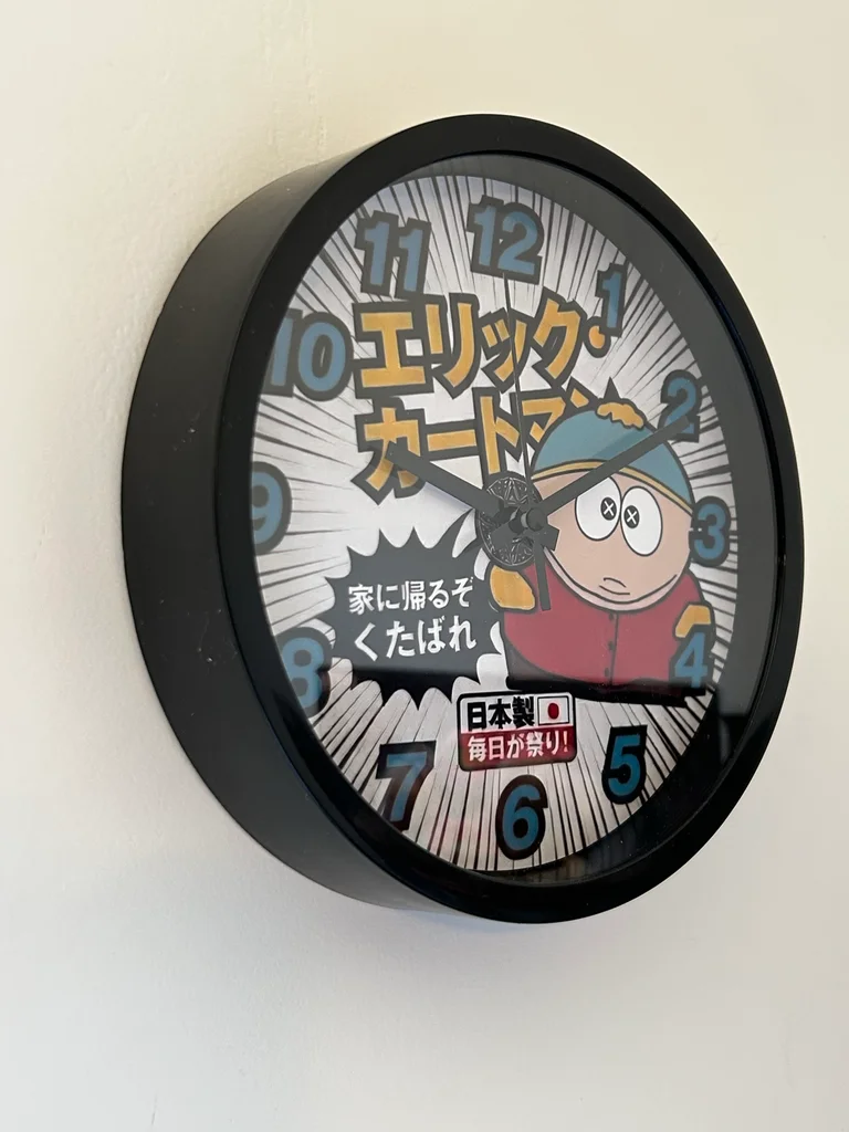 Horloge cartman japanese style Diamètre 20 cm Armature de couleur noir en polypropylène (plastique solide) et devanture (protection) en verre. Mécanisme à quartz classique. Fonctionne avec pile AA (Non fournie) Livraison soignée et rapide