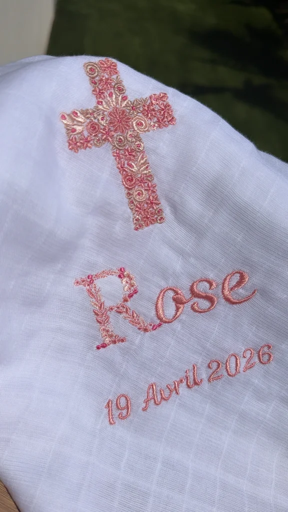 Châle de baptême sur commande Gaze de coton 60x60 cm Commander via mon insta: Mapinou_ Vous aurez mon site internet en bio