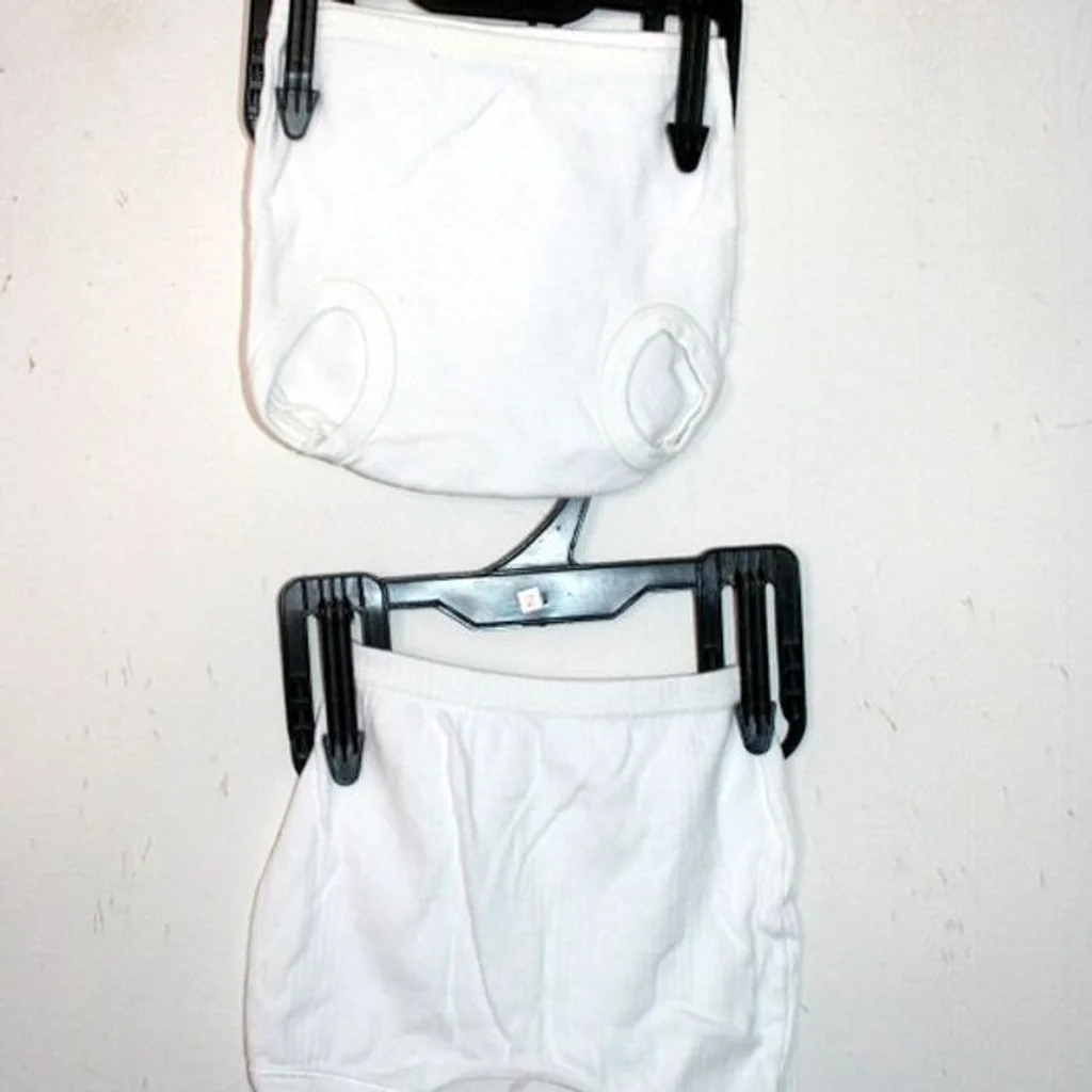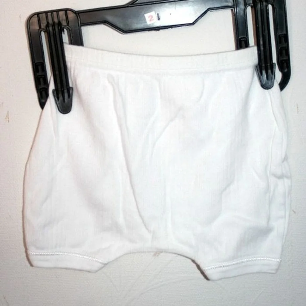Lot de 2 culottes blanches taille 1 mois, une marque Envog et l'autre marque Tex, 40g