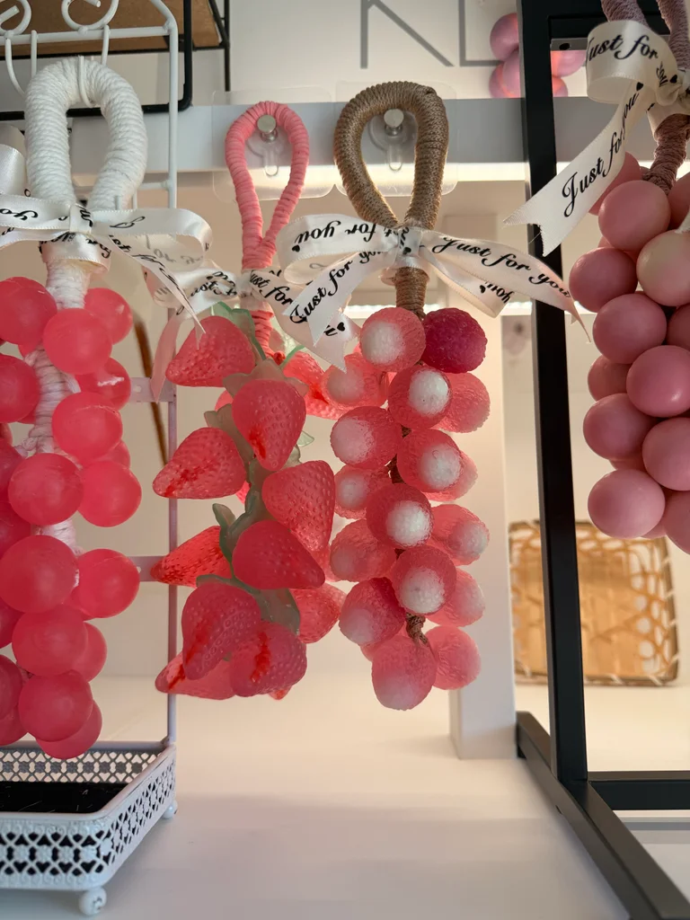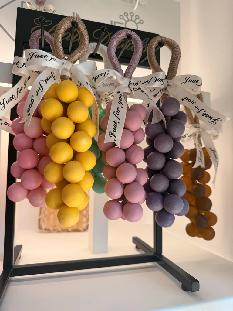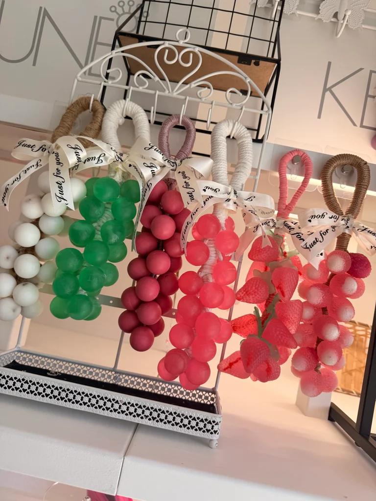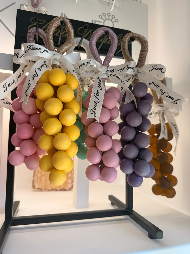 grappe décoratif et parfumé 🍇 Parfait pour apporter une petite touche élégante dans la cuisine accrocher sur le robinet (très priser),une salle de bain, sur une étagère ou dans un placard. Diffuse une odeur agréable et légère dans l’espace. Fait avec soin. Idée sympa aussi pour offrir 🎁
