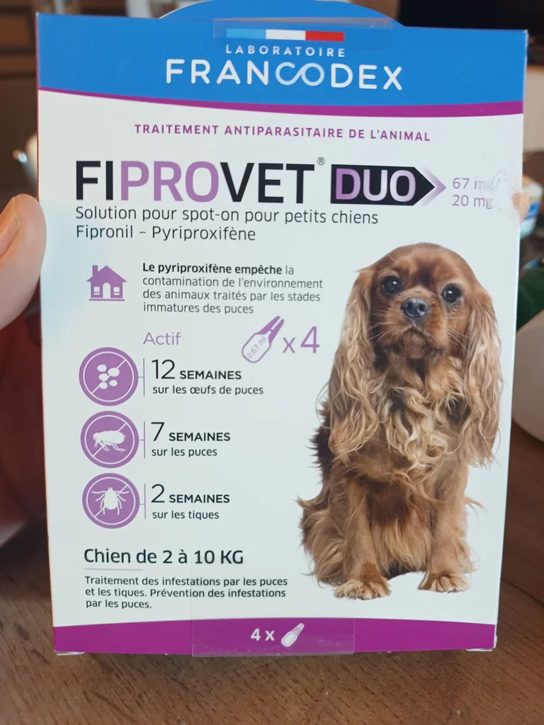Protection externe petit chien, francodex, fiprovet duo, neuf, date de péremption dépassée