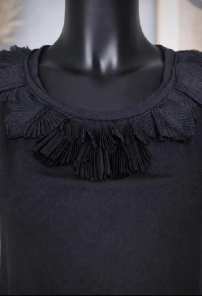 Joli top noir de la marque Colorblock, en taille S, parfait pour un look chic et tendance ✨ Son atout principal : son magnifique détail à franges au niveau du col qui apporte une touche originale et élégante. Coupe fluide et agréable à porter, idéale pour une tenue de soirée comme pour un look habillé au quotidien. ✔️ Matière : polyester ✔️ Taille : S ✔️ Coupe confortable et féminine ✔️ Détail franges travaillé au col En très bon état, peu porté 👍 Se porte facilement avec un jean, une jupe ou un pantalon habillé 💫 N’hésite pas à me contacter pour plus d’infos ou photos ! 😊