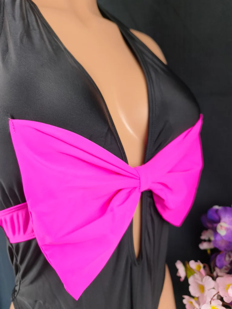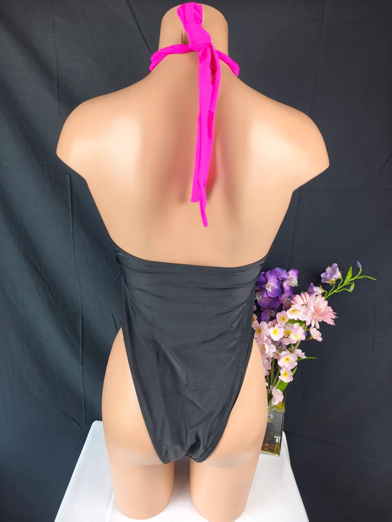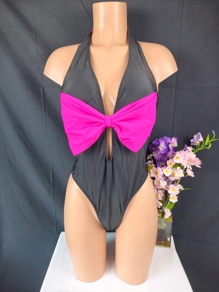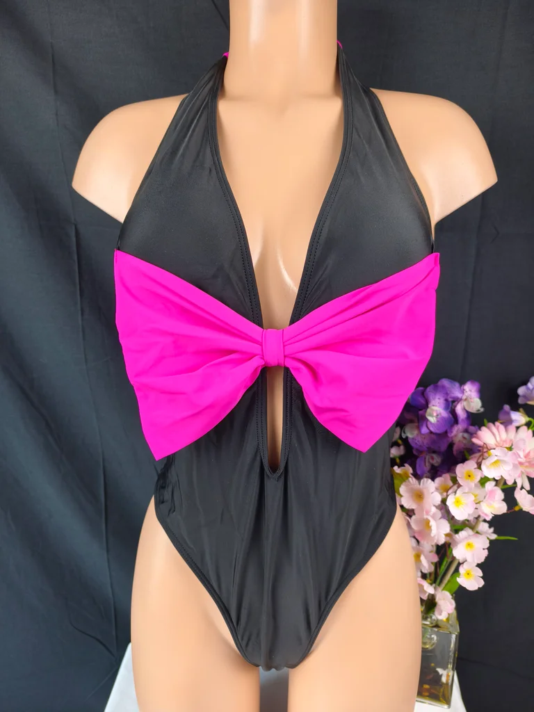 Faites sensation cet été avec ce superbe maillot de bain une pièce au design audacieux et ultra féminin ! Une pièce originale qui ne passe clairement pas inaperçue. Couleur noir intemporel avec grand nœud rose fuchsia flashy, en matière extensible, doux et confortable. Décolleté plongeant très flatteur, orné d'un magnifique nœud oversize sur le devant ! Attache autour du cou (style dos nu) pour un maintien ajustable. Coupe échancrée qui allonge la silhouette et dos dégagé pour une touche sexy et élégante. Ce maillot incarne parfaitement le mélange entre chic et glamour. Le contraste noir / fuchsia apporte une touche moderne et fashion, idéale pour se démarquer à la plage ou à la piscine. Design unique avec nœud XXL très tendance, il met en valeur le décolleté et la silhouette. Idéal pour bronzer avec style ! Taille L 40 mais convient aussi à une taille M 38, état impeccable, jamais porté, photos conformes à l'article vendu. Livraison rapide et soignée. #maillotdebain #maill [Description tronquée]