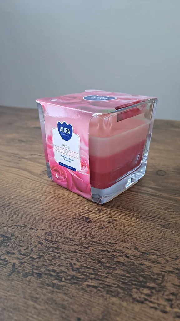 Bougie parfumée à trois couches en verre. Parfum raffiné et intense de rose aux huiles essentielles. Idéale pour créer une ambiance élégante, pour les moments de détente ou comme cadeau. ✔ Marque : AURA Candles by BISPOL ✔ Parfum : Rose ✔ 2 mèches pour une combustion complète ✔ Durée 32h ✔ Poids 170g ✔ Verre décoratif à trois couches ✔ Qualité premium parfum intense aux huiles essentielles Fabriquée selon des standards de qualité élevés, cette bougie respecte les normes de sécurité en vigueur et garantit une combustion propre, sans fumée excessive.