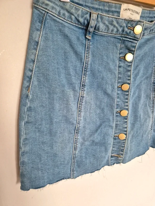 📌 20% de remise pour l'achat de 4 articles, suite ... Jupe en jean bleu clair, boutonnée sur le tout le devant, forme évasé, ➡️Largeur taille 40 cm ➡️Longueur 39 cm ➡️ 94 % coton 4 % polyester 2 % élasthanne ⭐ Excellent état ✈Envoi rapide des colis 💗 Abonnez vous à mon profil, nombreux articles ajoutés régulièrement ! 🌸 Tapez Laetitresors pour voir mes annonces #laetitresors_jupe40 #jupe #jean #bleu #clair #courte #la #petite #etoile #bouton #laetitresors