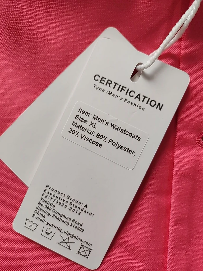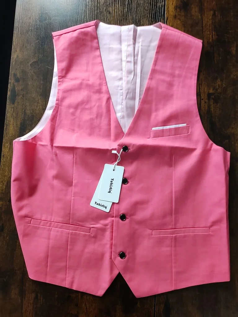 Gilet de costume de couleur Rose. Couleur : Rose Taille : XL Matière : Polyester 80% / Viscose 20% État : Neuf avec étiquette