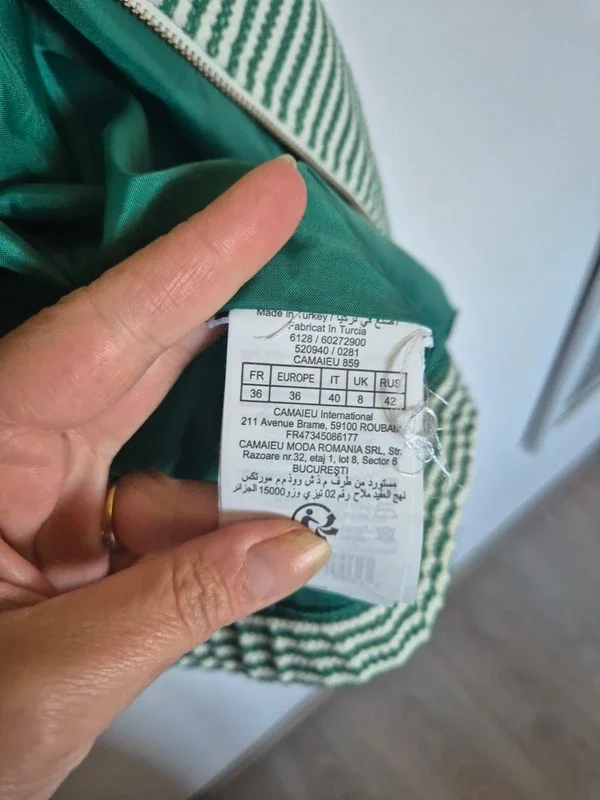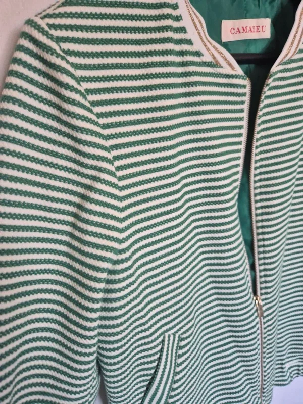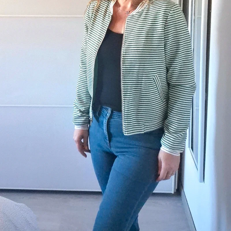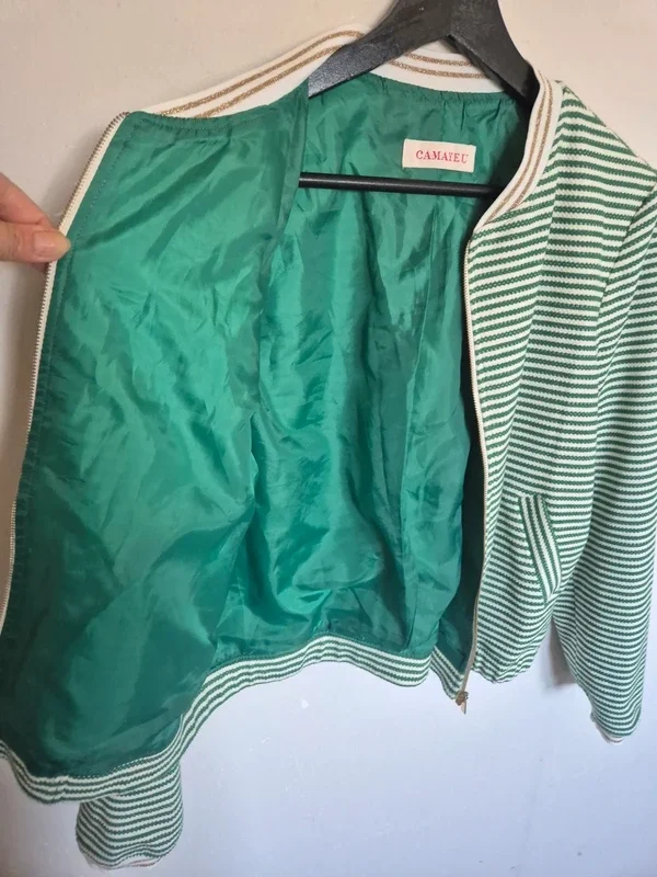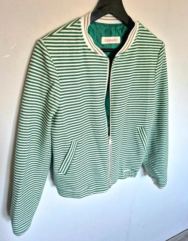 Veste verte à rayure blanche , style bombers, fermeture éclair, 2 poches, ➡️Largeur à plat sous les bras 48 cm ➡️Longueur 50 cm ➡️ 62 % polyester 21 % coton 10% viscose 7% elasthane ⭐ Excellent état ✈Envoi rapide des colis 💗 Abonnez vous à mon profil, nombreux articles ajoutés régulièrement ! 🌸 Tapez Laetitresors pour voir mes annonces #laetitresors_manteau36 #veste #bombers #camaieu #vert #blanc #blouson #fin #rayure #rayé #poche #fermeture #eclair #laetitresors
