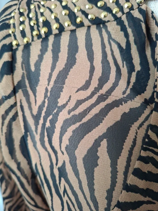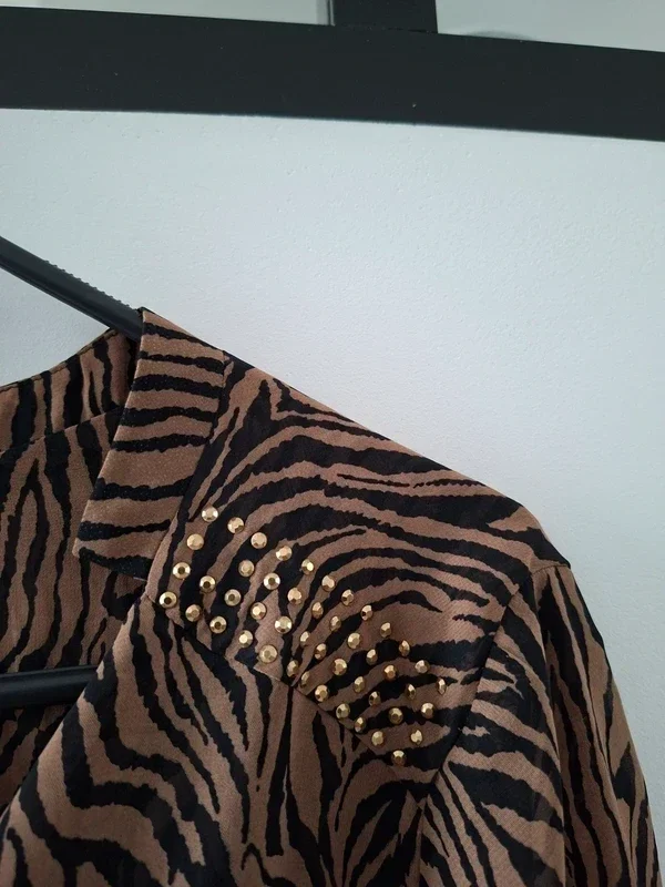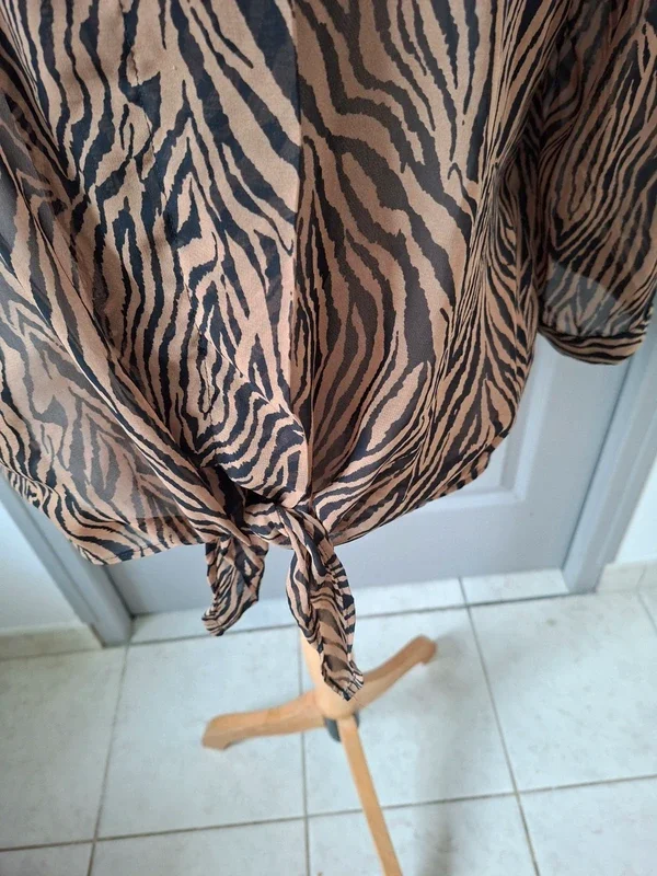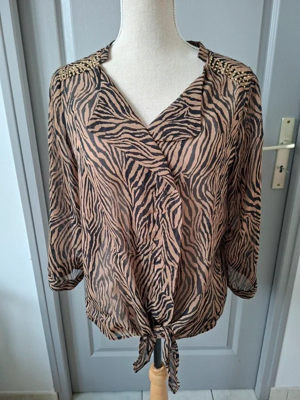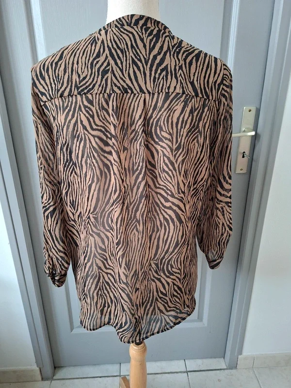 Bien lire l'annonce, merci BREAL, chemisier, bon état, juste 2 petits défauts, fils tirés à qq endroits et petite tache jaune sur une manche, voir les 3 dernières photos Marron un peu plus foncé que les photos, correspond plus à seconde photo Manches qui peuvent se relever, à porter avec un top, légère transparence T 42