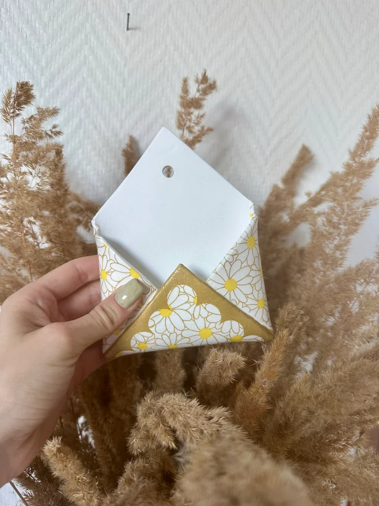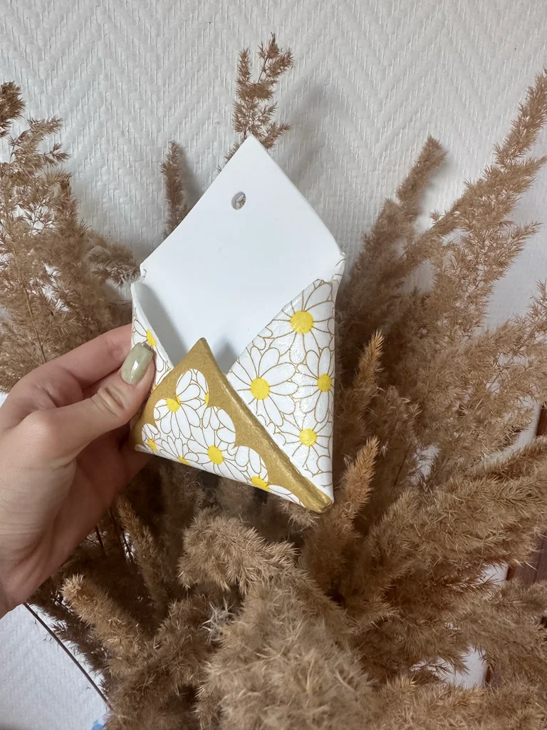 Petite enveloppe murale en argile 🌼 Vous pouvez y glisser une photo, des bijoux, des clés ou tout autre petit objet. À savoir : les créations sont pas adaptée pour mettre de l’alimention ainsi que de l’eau ! Chacun de mes créations sont personnalisable hésitez pas à me contactez 🌼