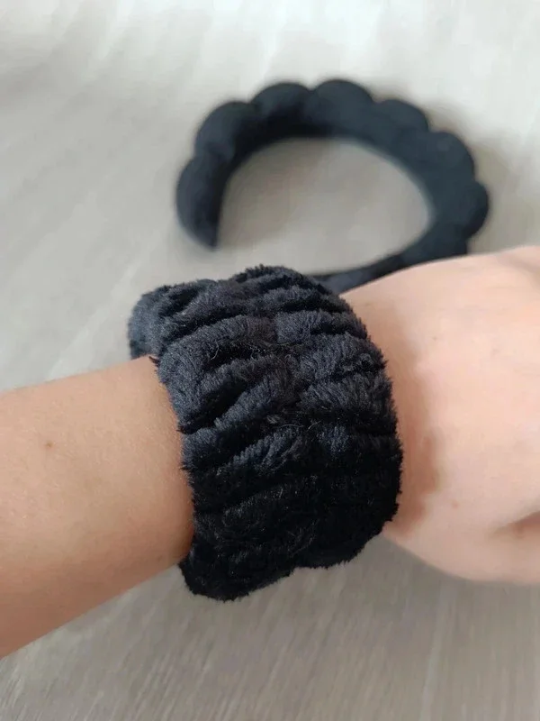 Lot serre tête bandeau et bracelets en éponge noir | Opla