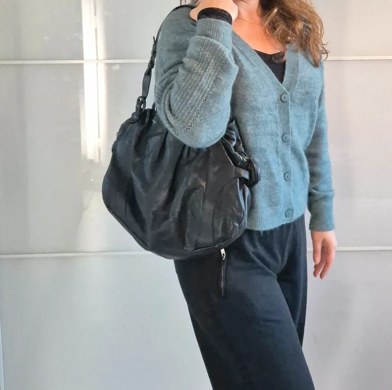Sac à main le Tanneur en cuir, noir, forme souple demi lune, modèle Mathilde, grand format, ➡️dimension 41 cm x 30 cm x 11 cm ⭐ Quelques traces sur le cuir par endroit, voir photo mais il reste en très bon état ✈Envoi rapide des colis 💗 Abonnez vous à mon profil, nombreux articles ajoutés régulièrement ! 🌸 Tapez Laetitresors pour voir mes annonces #laetitresors_sac #sac #le #tanneur #modele #matilde #noir #cuir #hobo #vintage #chic #laetitresors