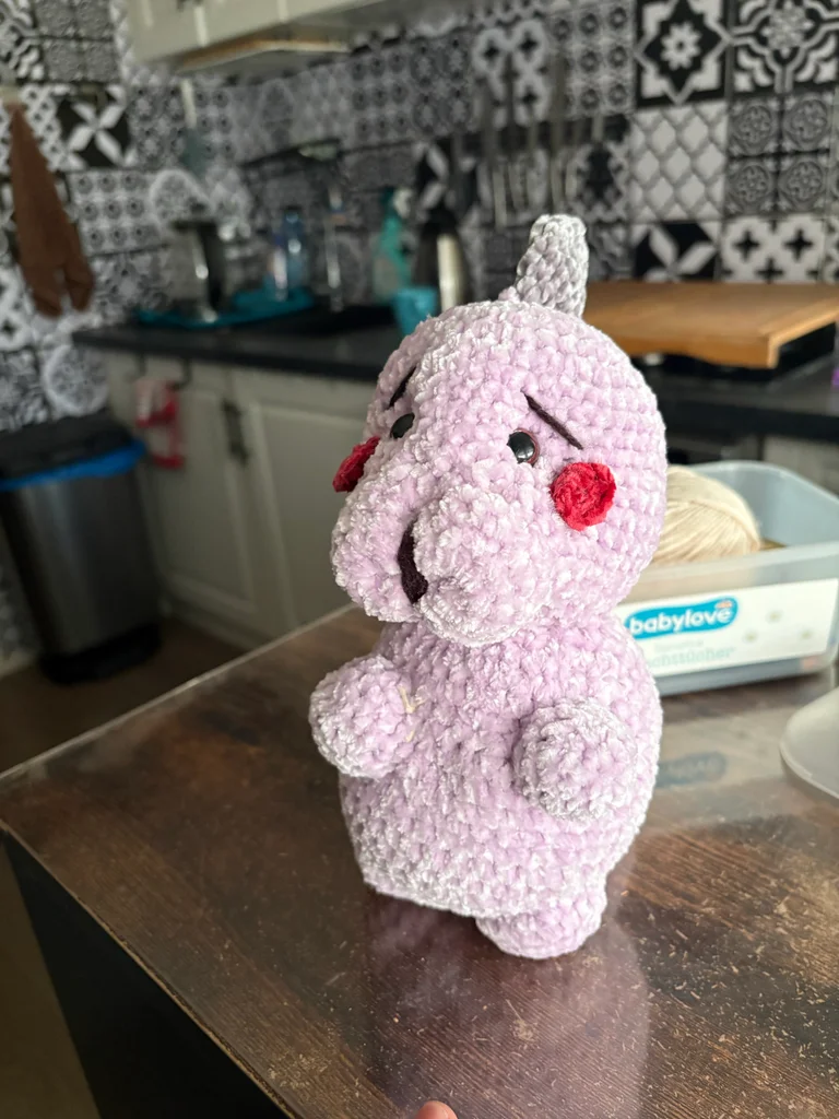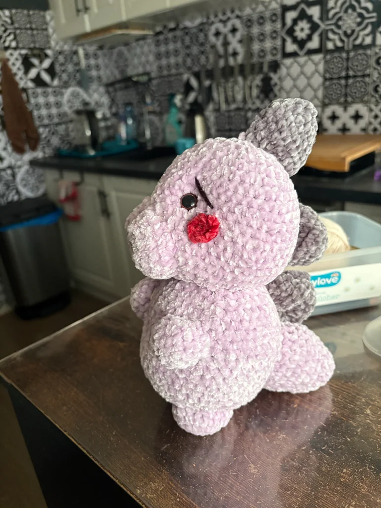 Bonjour dinosaure peluche fait main laine velour 15 cm