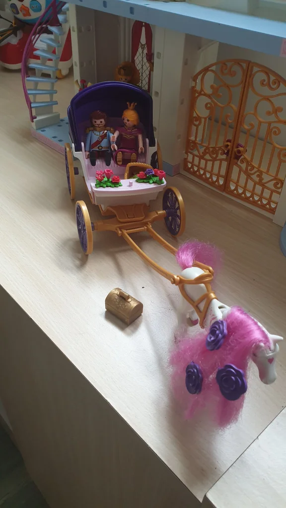 Chateau de princesse playmobil et sa calèche. Très bon état