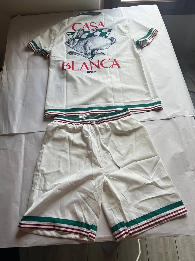 Ensemble Casablanca Paris – T-shirt + Short Taille : M Coloris : Blanc / Vert / Rouge T-shirt "Casa Blanca Sport" – Lapin graphique dos Bandes rayées vert & bordeaux Short assorti élastique coordonné Set complet 🔥 État : Très bon état