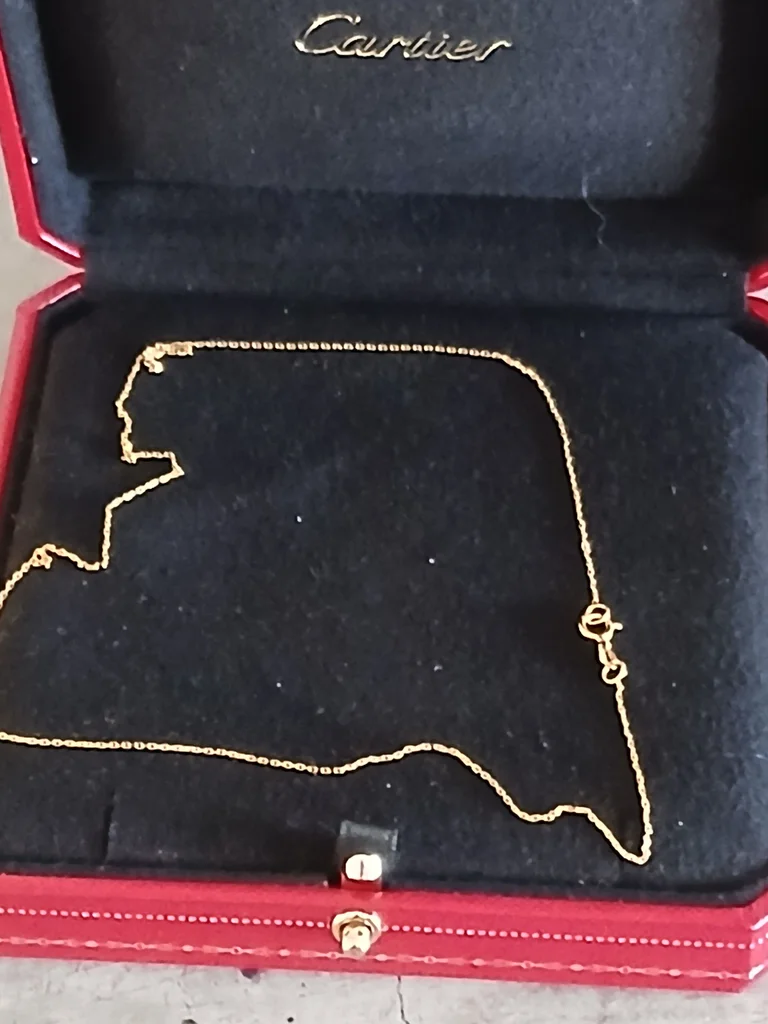 🌟 Somptueuse Chaîne - Maille Forçat - Or Jaune 18K 🌟 Sublimez votre décolleté avec cette magnifique chaîne en or jaune 18 carats (750/1000). Un grand classique de la joaillerie, alliant élégance intemporelle et finesse absolue. ✨ Caractéristiques & Détails : Maille : Forçat, réputée pour sa robustesse et son éclat scintillant à chaque mouvement. Matière : Or massif 18 carats / Or 750 (poinçon présent). État : Neuve, jamais portée. Sort de son coffret uniquement pour la photo. Style : Un design épuré, parfait à porter seule pour un look minimaliste chic ou accompagnée d'un pendentif précieux. 💎 Pourquoi craquer ? C’est la pièce indispensable de toute boîte à bijoux. Sa maille forçat offre une brillance radieuse et une fluidité exceptionnelle sur la peau. Un investissement durable et un cadeau prestigieux qui traverse les époques sans jamais faiblir. Poids supérieur à 1 gramme vérifié par expert. Je n’ai pas la facture car c’est un cadeau qui m’a été offert avec un pendentif [Description tronquée]