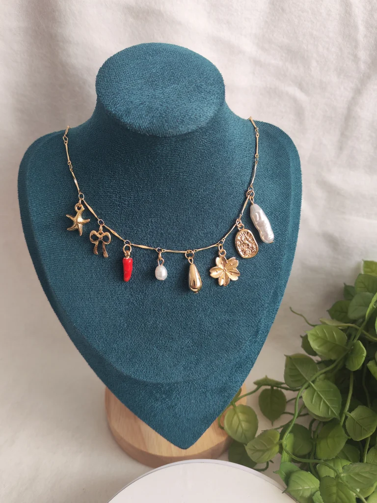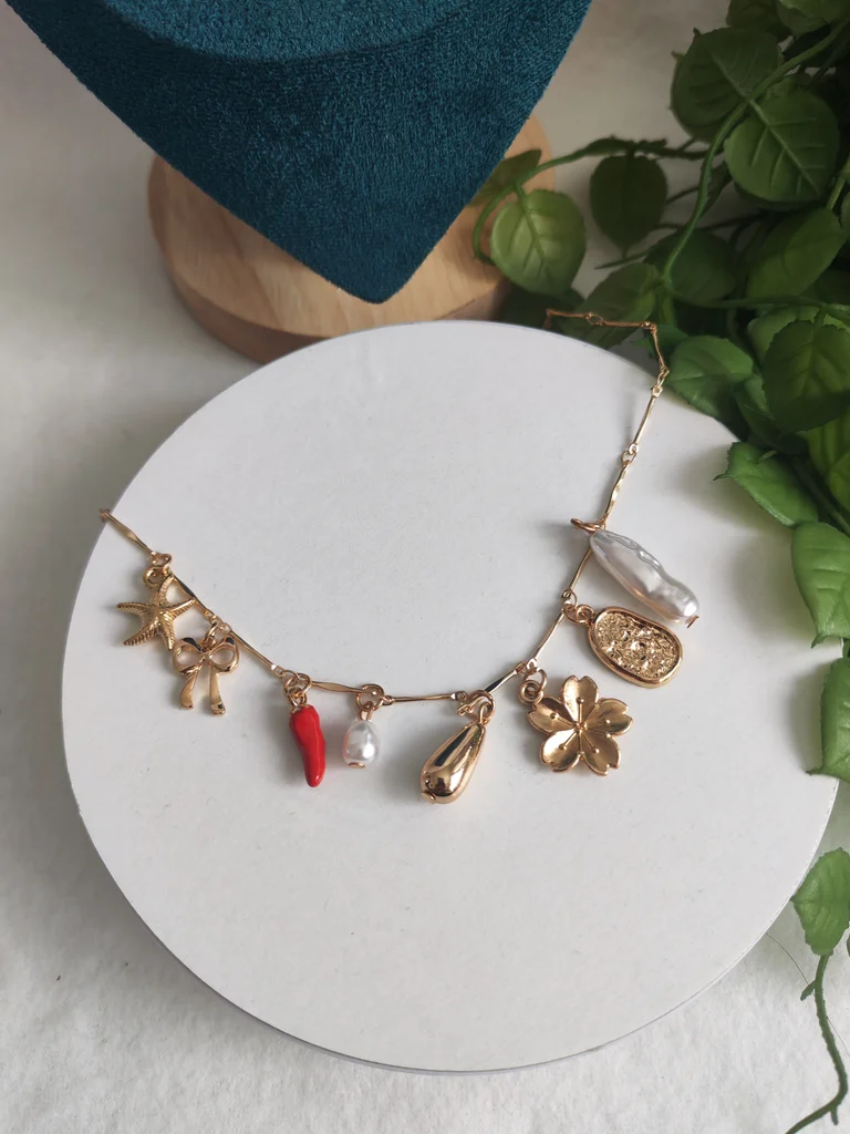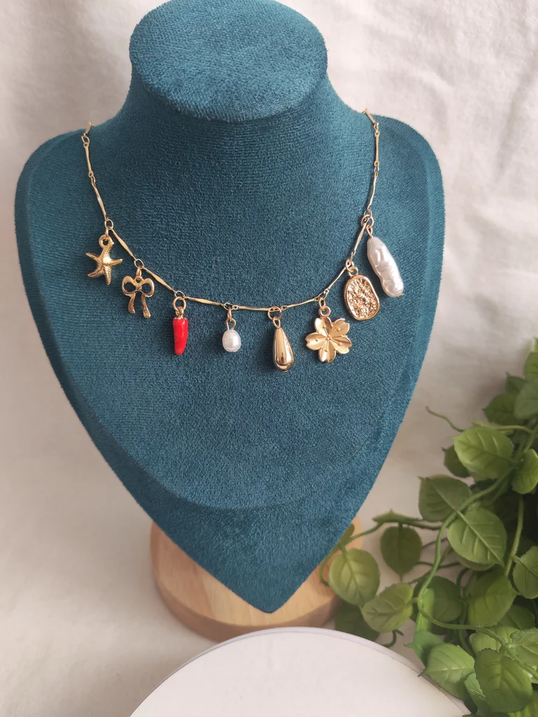 Collier femme dore et ses jolies breloques Avec pochette cadeau Neuf jamais porté Envoi rapide et soigné Une petite attention dans chaque commande