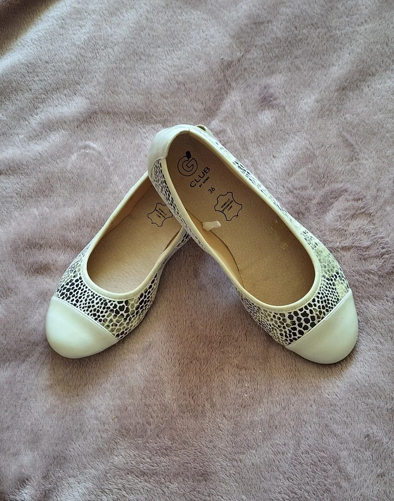 💛🥿 Ballerines femme. Un modèle élégant et confortable, parfait pour le quotidien ou les occasions spéciales. Blanc cassé et noir. Bouts renforcés 🥿💛 💛🥿 Pointure 36 💛🥿 Marque Gémo 💛🥿 Très bon état. Portée une fois 📦 Envoi rapide et soigné