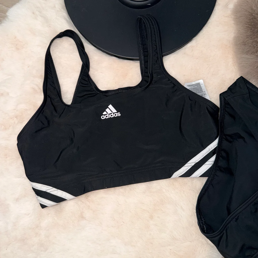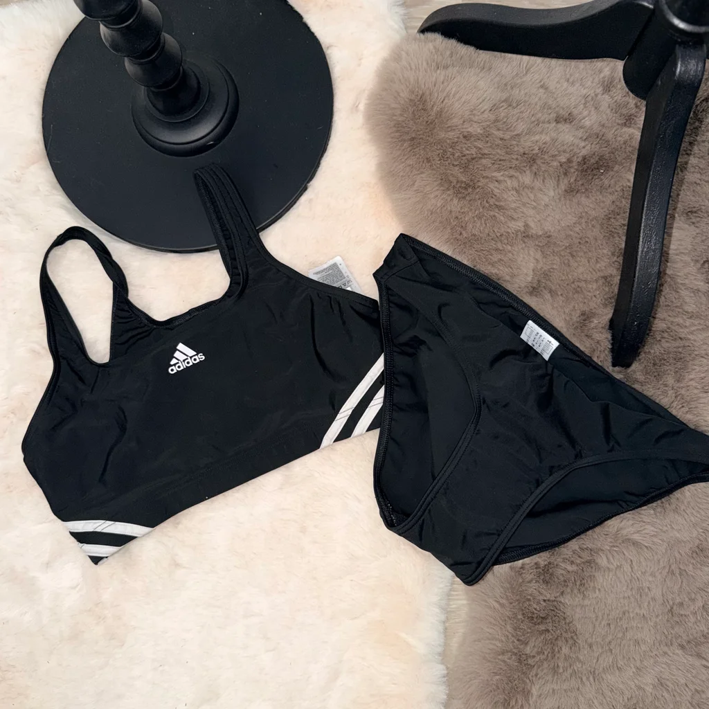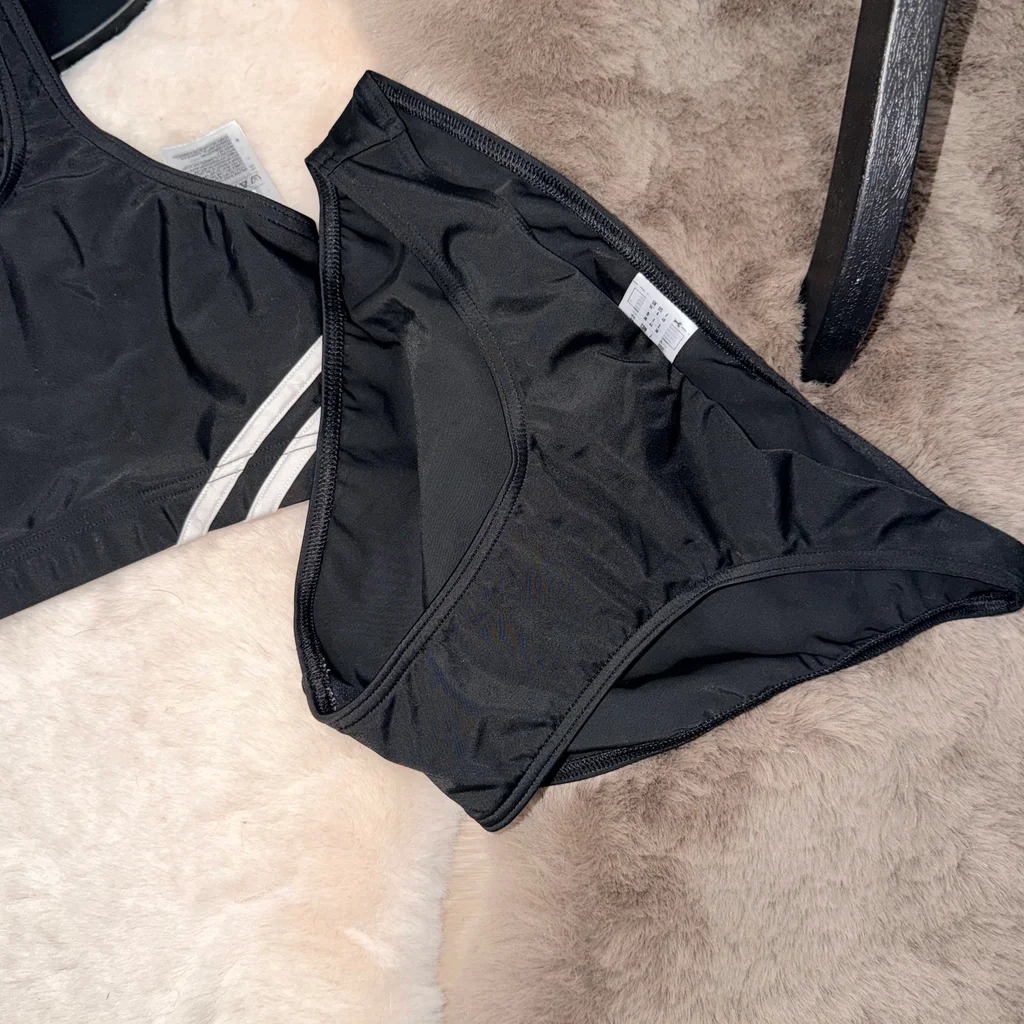 Ensemble maillot de bain Adidas noir avec bandes blanches iconiques. Style sportif et intemporel, parfait pour la plage ou la piscine 🖤 🔹 Détails : • Taille : 40 (FR) • Haut type brassière avec bon maintien • Bas classique confortable • Couleur : noir avec bandes blanches • Logo Adidas sur le haut • Matière agréable et extensible 🔹 État : Très bon état, peu porté 👍 🔹 Prix : 28€ 📦 Envoi rapide et soigné