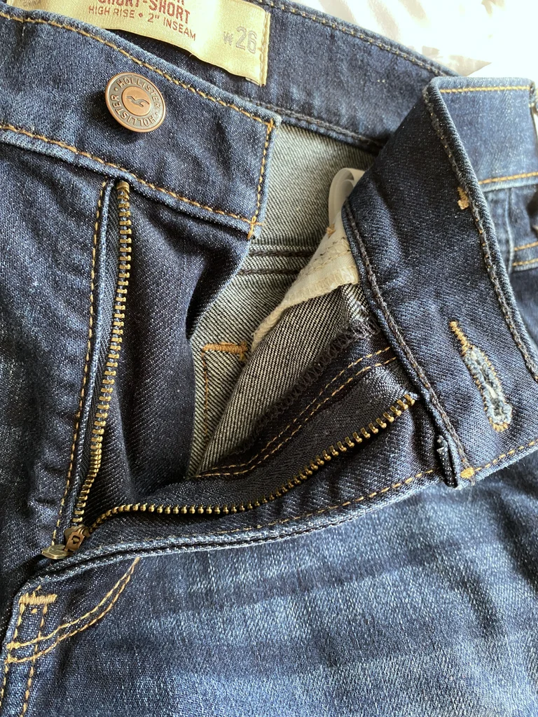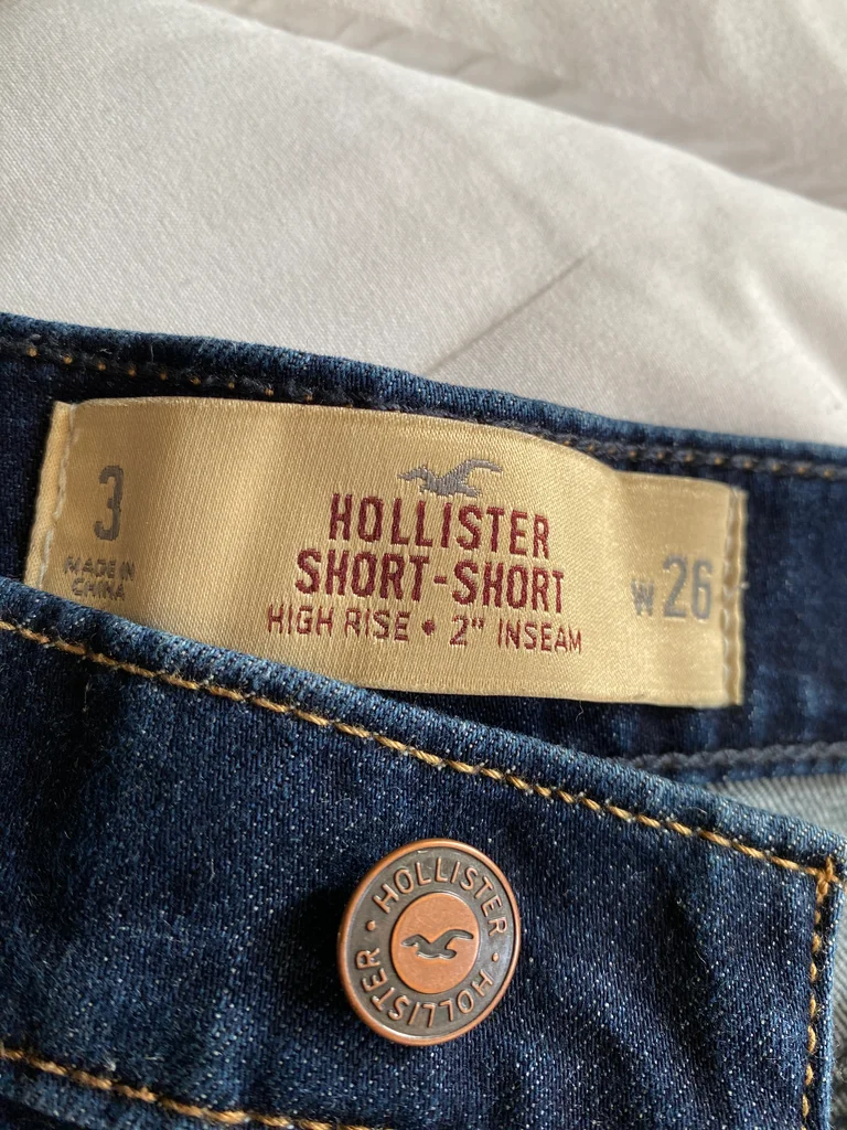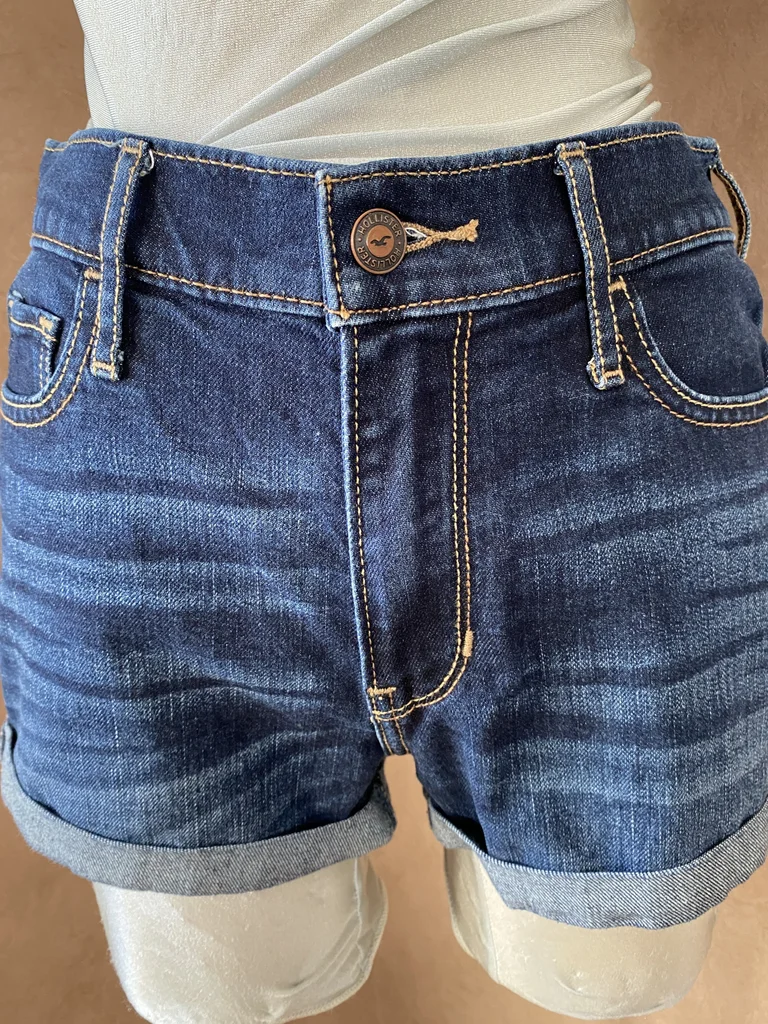 Superbe short en jean bleu brut avec surpiqûres contrastantes beige qui apportent du relief et un style casual chic Marque : Hollister En excellent état (jamais porté) Taille : W26 = FR 36 Composition : 78% coton, 21% polyester, 1% élasthanne 📏Mesures : Longueur : 27 cm Largeur taille à plat : 35 cm 💙 Détails : Coupe moderne high rise (taille haute) Revers cousus (style structuré) Fermeture : bouton + zip 2 Poches à l’avant + 2 à l’arrière ✨ Coupe flatteuse, parfaite pour un look été / casual / streetwear ⚡envoi rapide du colis ⚡