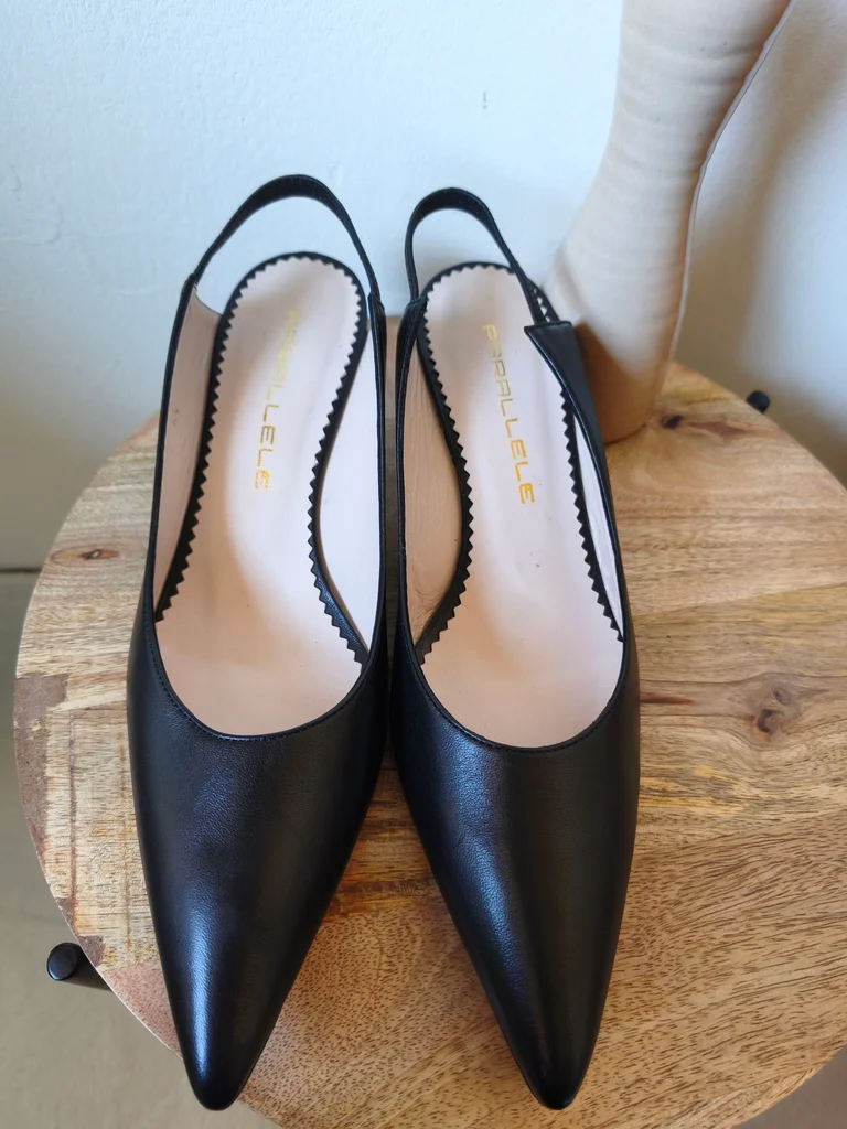 Escarpins en cuir Parallèle – Taille 37,5 – Neufs Escarpins Parallèle Paris en cuir, élégants et intemporels. Jamais portés, neufs avec leur boîte d’origine. ✨ Détails : Marque : Parallèle Pointure : 37,5 (4,5), pour la taille se référer au tableau sur la dernière photo. Matière : cuir Talon élégant et confortable Bride arrière (slingback) État : neufs, jamais portés Parfaits pour une tenue chic, un événement ou pour le bureau. 📦 Envoi rapide et soigné. 💬 N’hésitez pas à me contacter pour plus d’informations.