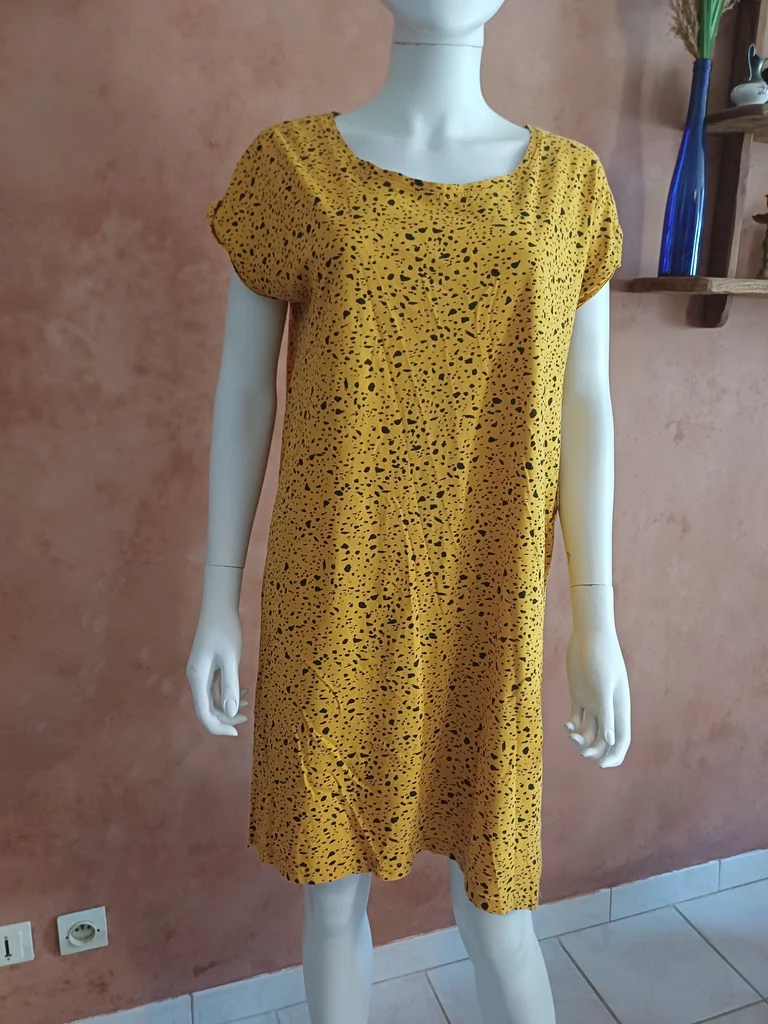 Jolie robe à point noir de couleur moutarde Taille 42 / 44 Longueur après genou Très bon état