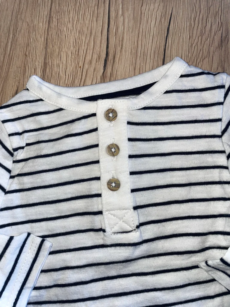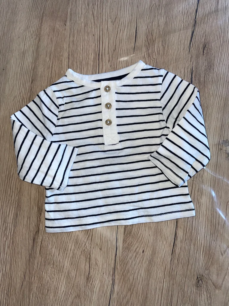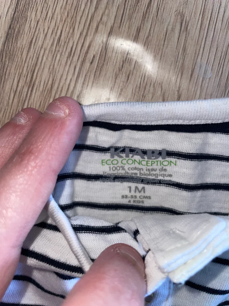 Je vends ce t-shirt Kiabi pour bébé de 1 mois. - Type de produit : T-shirt - Taille : 1 mois / 55 cm - Marque : Kiabi - Couleur : Blanc et bleu marine N'hésitez pas à me contacter pour plus d'informations.