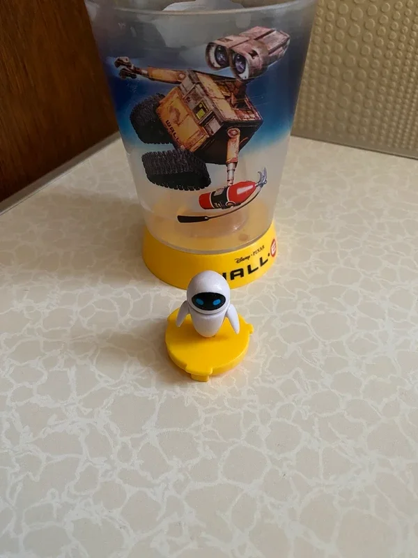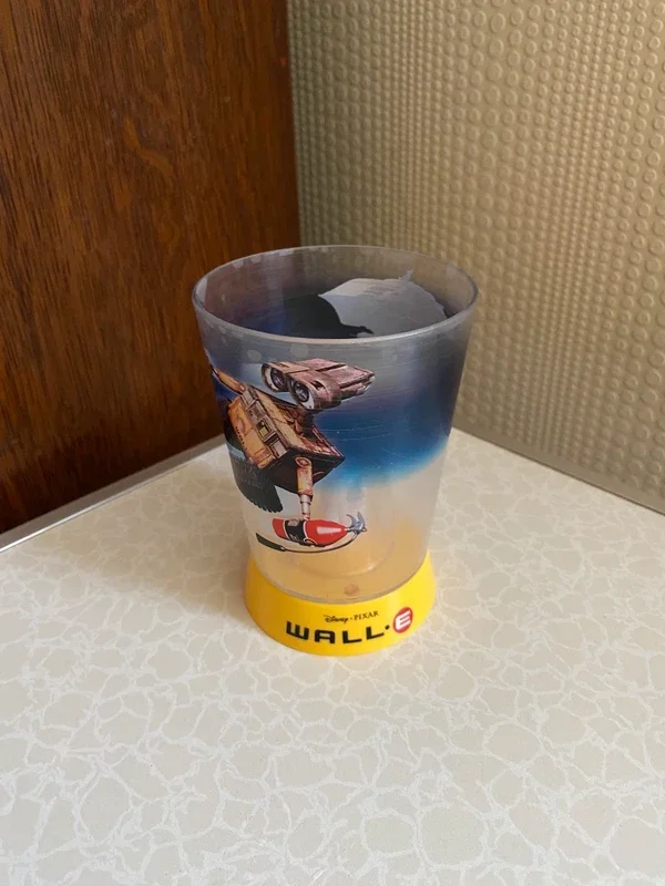 Gobelet en plastique avec figurine intégrée à l'intérieur, inspirée de l'univers Wall-E Original et ludique Idéal pour collectionneur ou enfant Marque : Disney Pixar Matière : plastique Couleur : transparent avec base jaune État : Bon état ( quelques traces d’usage) voire photo Prix: 2€