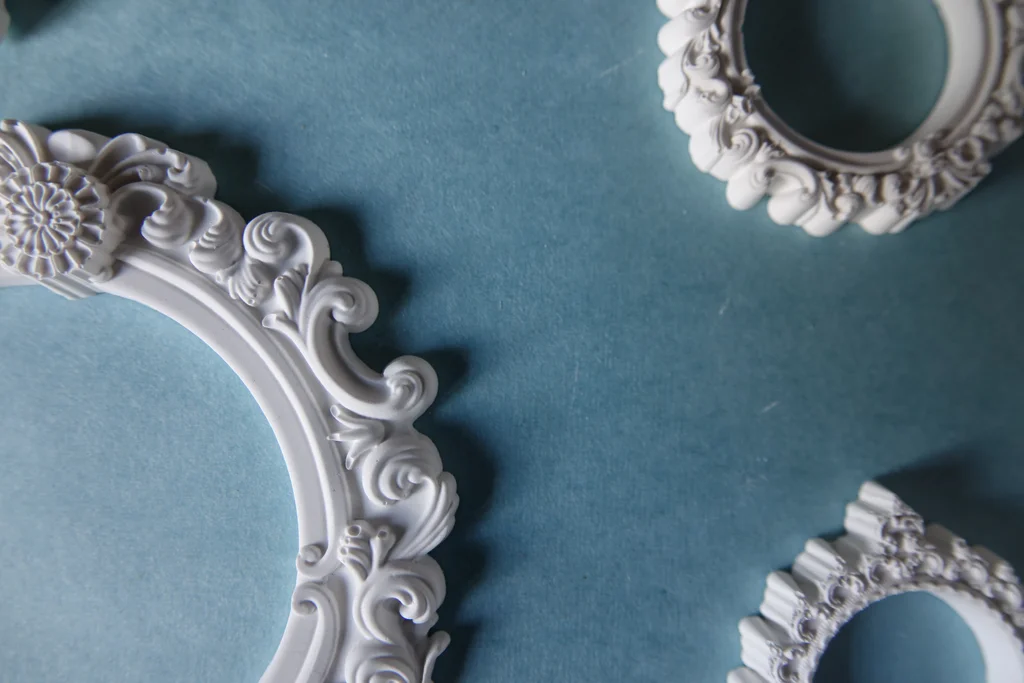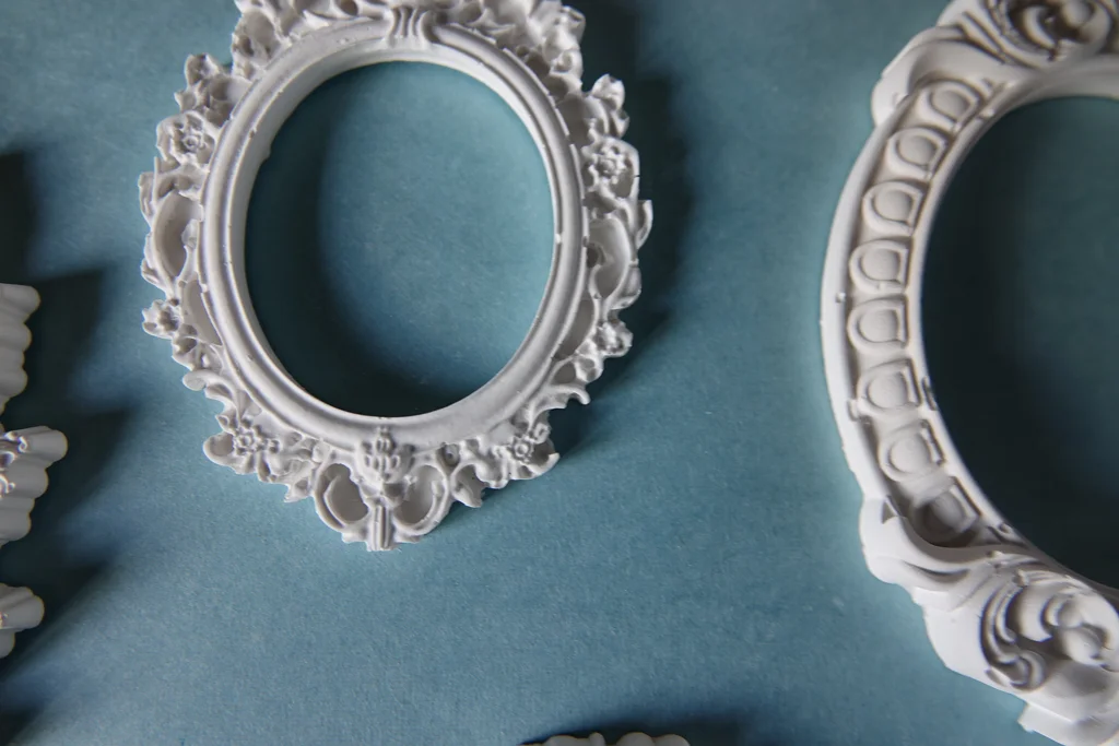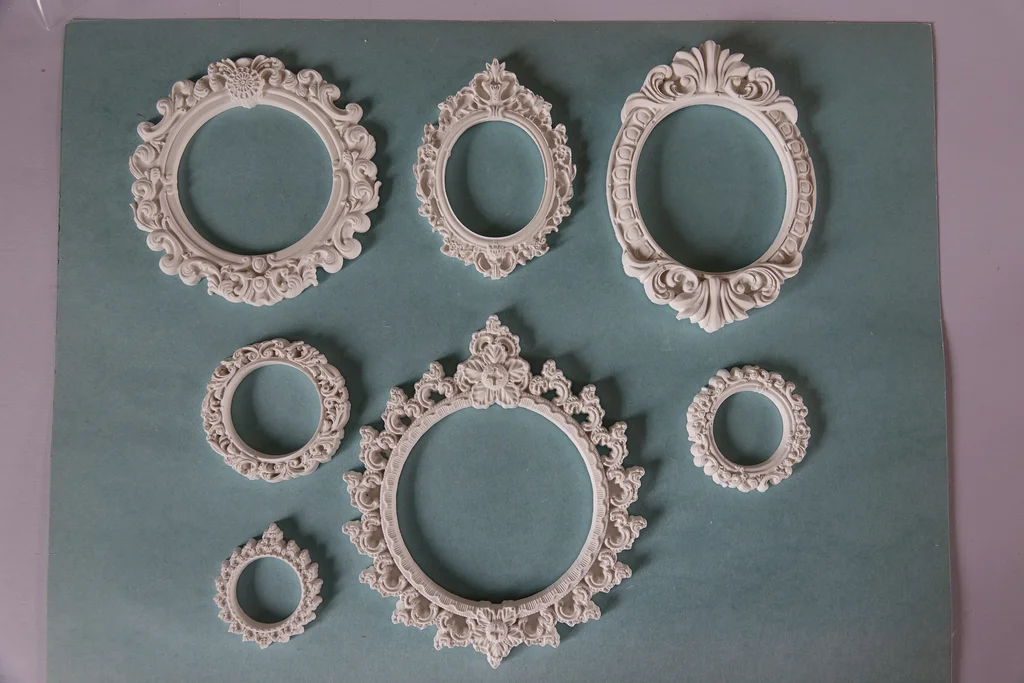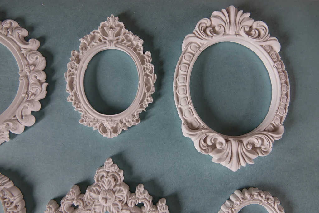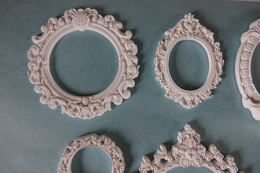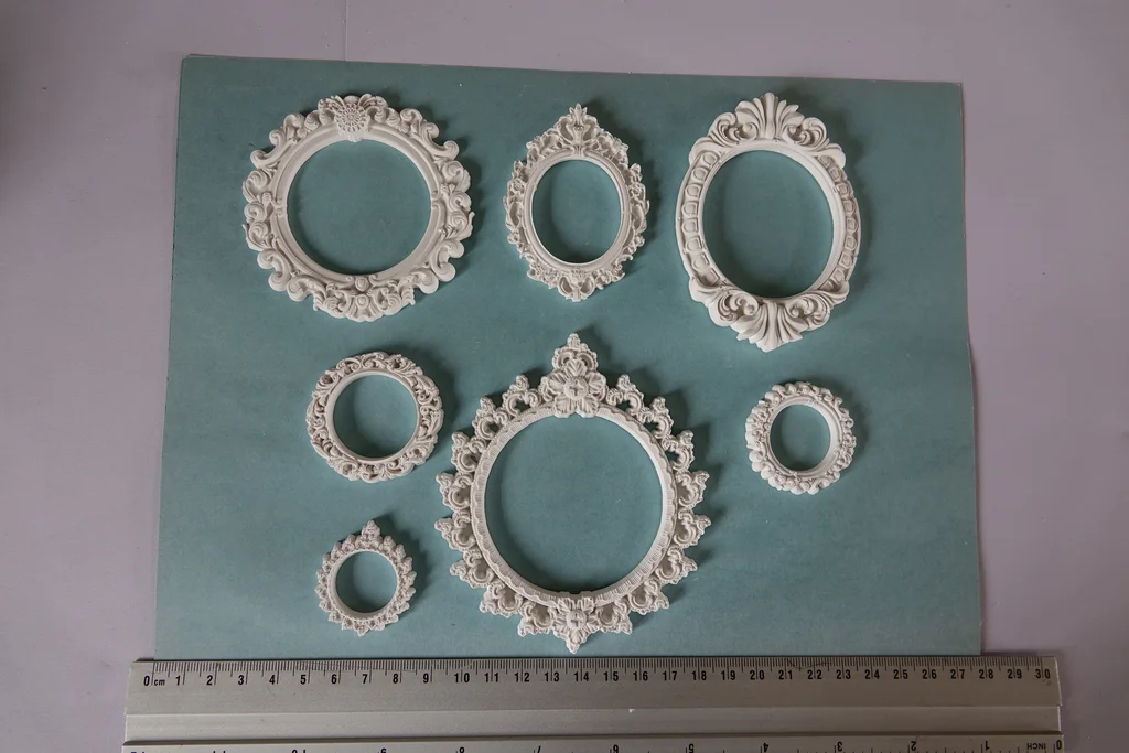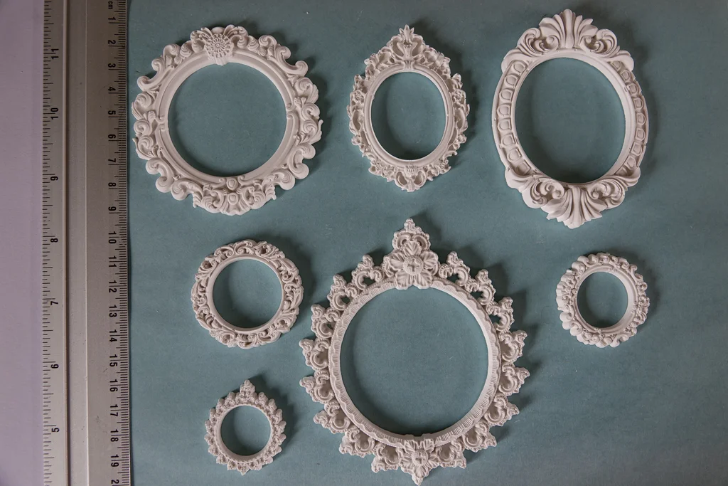Lot de 7 minis cadres en plâtre raysin 200 À peindre, vernir ou personnaliser selon vos envies. Fabrication artisanale : de légères imperfections peuvent être présentes.