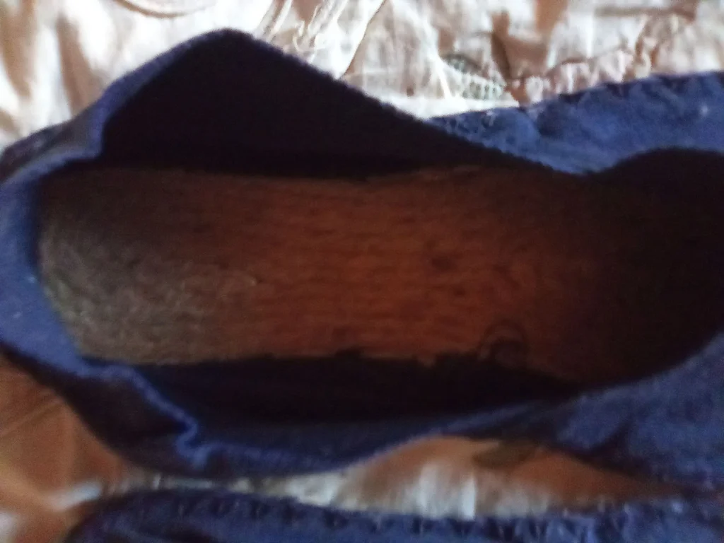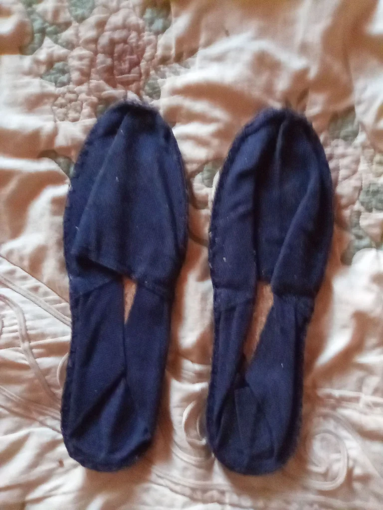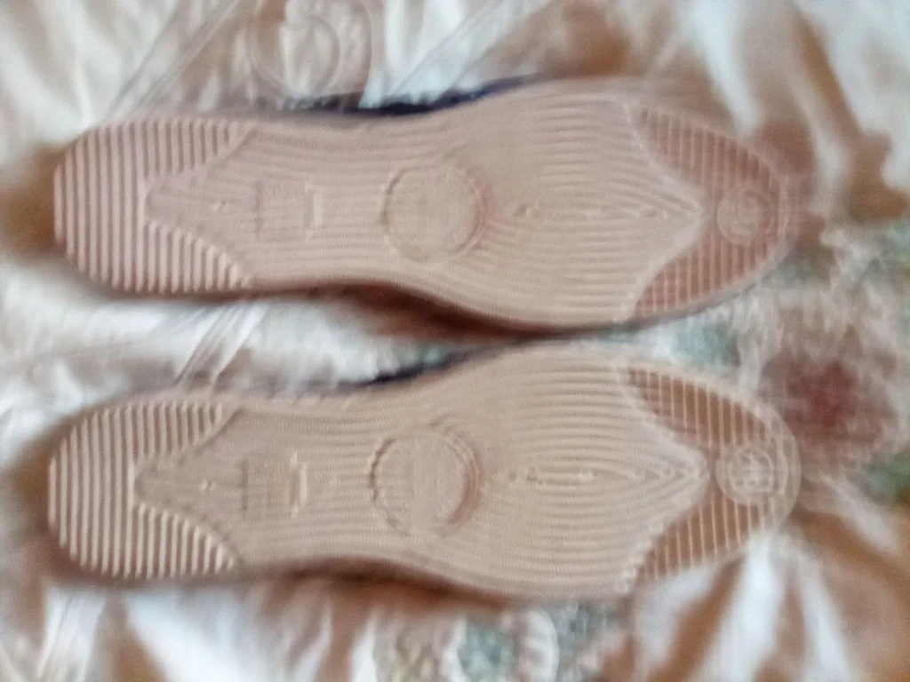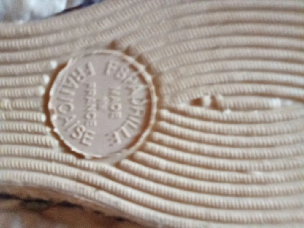 Espadrilles neuf de taille 40. Les espadrilles ont la toile supérieur de couleur bleu, la semelle intérieure de couleur "blé" et la semelle inférieure de couleur beige. Il y a l'inscription suivante sur la semelle inférieure la taille (40) et au centre l'indication suivante " Espadrilles française, made in France". Je pense qu'elle sont unisexe, neuf sans étiquette