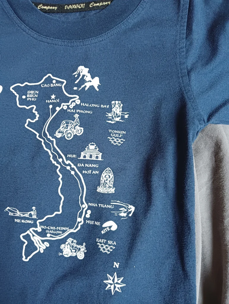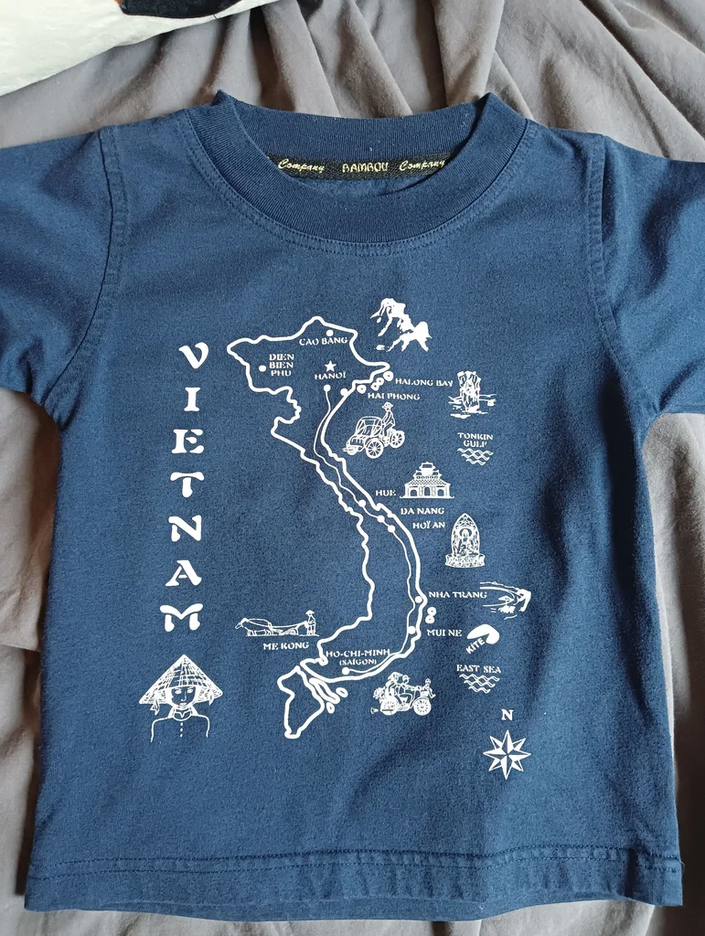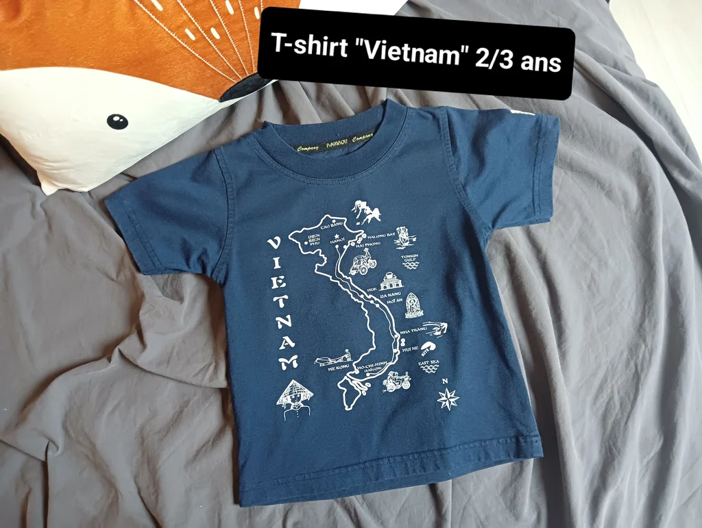 🌀 T-shirt manches courtes. Marque "Bambou company" En très bon état. 📏 La taille indique 1/3 ans , le t-shirt est parfait pour du 2/3 ans. ▪️ Thématique "Vietnam" ▪️100% coton de très belle qualité.