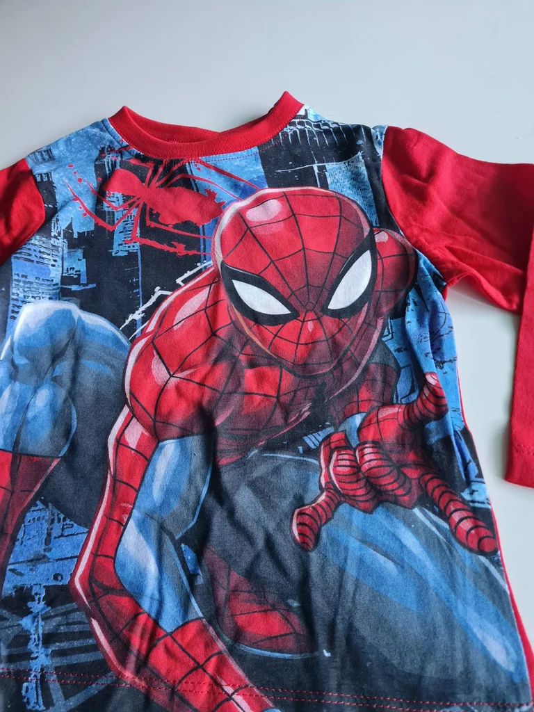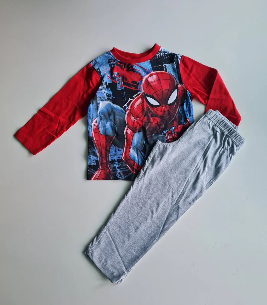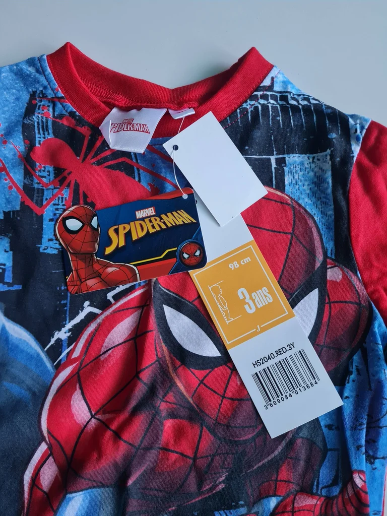 MARVEL Spiderman pyjama 2 pièces léger haut longueur 40cm rouge/bleu bas longueur 52cm taille élastique gris #lesplacardsenfoliegarçon3ans ref1