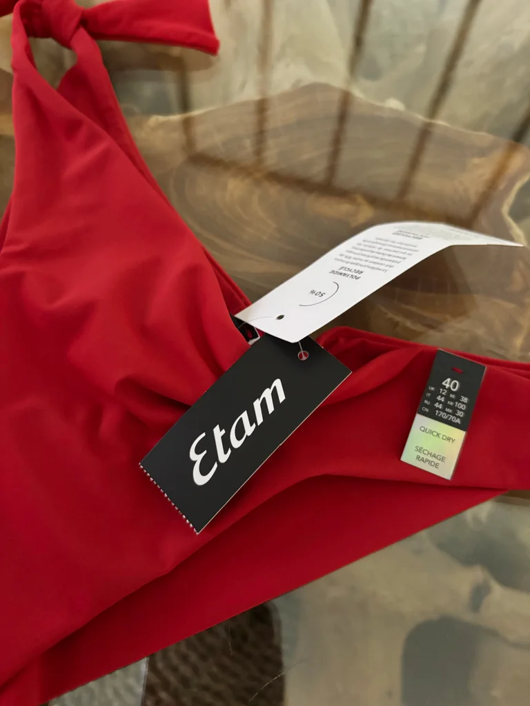 Bas de maillot de bain Etam Modèle Essentielle brésilien nou ntielle Réglable sur les côtés Uni rouge Taille 40 Neuf avec étiquette N'hésitez pas à faire des lots ✨ réduction dès 2 articles (d'autres maillots de bain à vendre) Pour voir mes autres maillots de bain à vendre : #mdbludi2607 ✉️Pas de remise en main propre